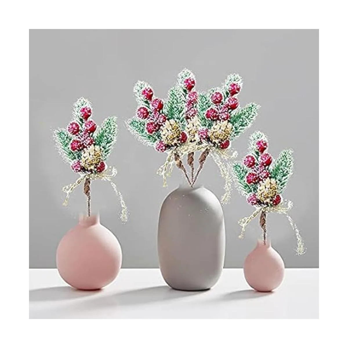 Uso amplio: no solo se utiliza para Navidad, sino también para otros. Spray de bayas blancas sintéticas, púas florales decorativas verdes para centros de mesa de recepción de bodas, hechos a mano, adornos de papel de regalo, centro de mesa de buffet, arreglo floral, álbumes de recortes, jarrón o ramo de flores, decoración de cocina, sillas, banco, pasillo, escenario y accesorio de fotos, adornos de ramos de San Valentín, regalos de anfitriona, accesorios de guirnalda hechos a mano, decoración de mantel, recuerdos de fiesta. Mesas centros de mesa