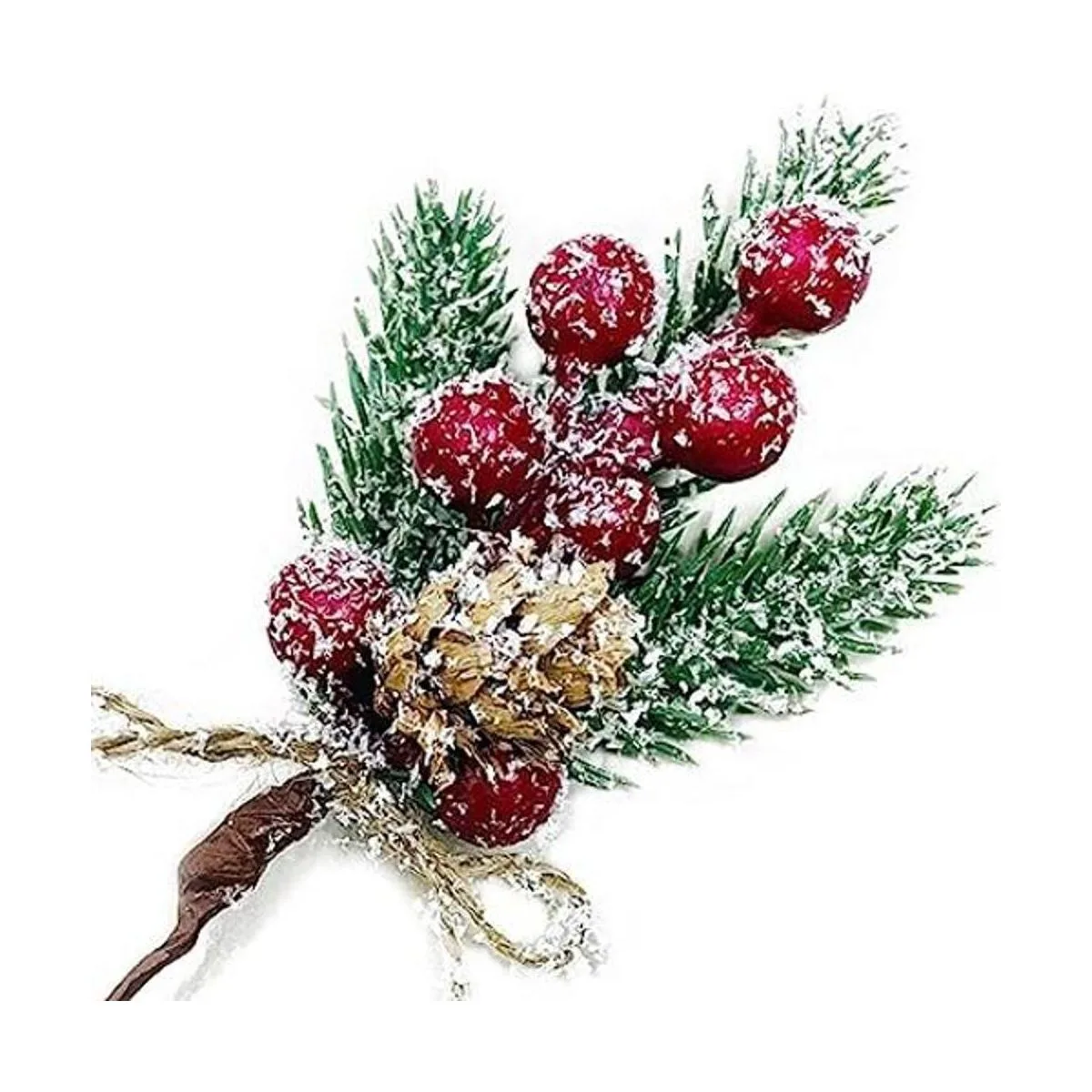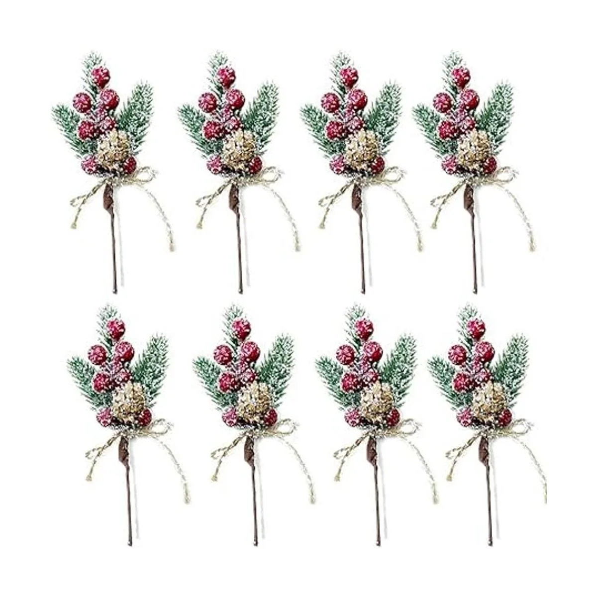 LEBERY 8 piezas de bayas de Navidad, tallos rojos de pino perenne, púas de Navidad en aerosol, conos de pino artificiales para manualidades, tallo de acebo, púas florales de invierno para decoración de bricolaje, guirnalda de Navidad 0129