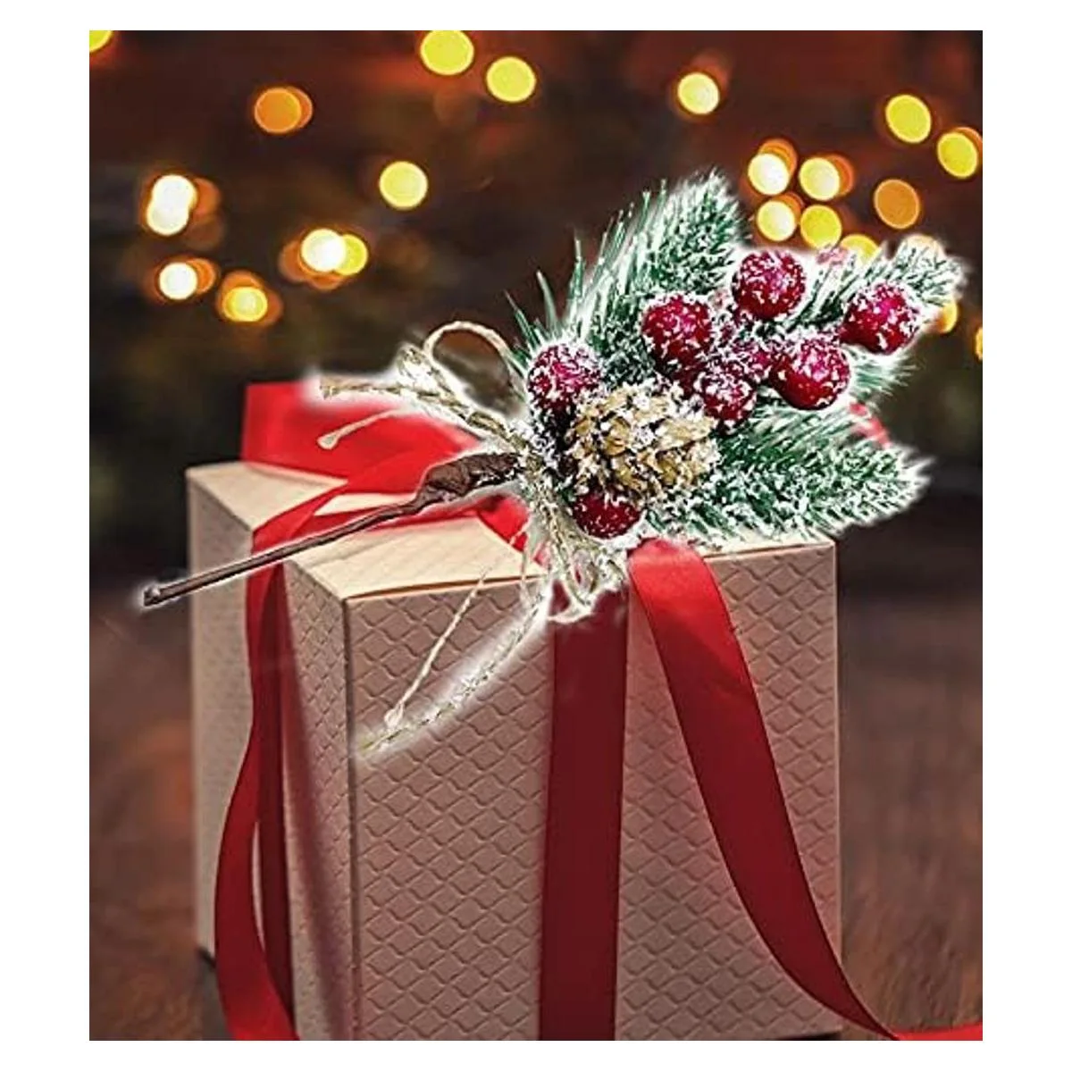 Ramas de pino y bayas rojas de invierno : púa floral de aspecto realista y natural, el juego de tallos de bayas artificiales está hecho de materiales de alta calidad y exquisita artesanía. Cada rama falsa tiene muchas bayas pequeñas completas con tallo de alambre ramita, soportes, pulverización envueltas en cinta de floristería