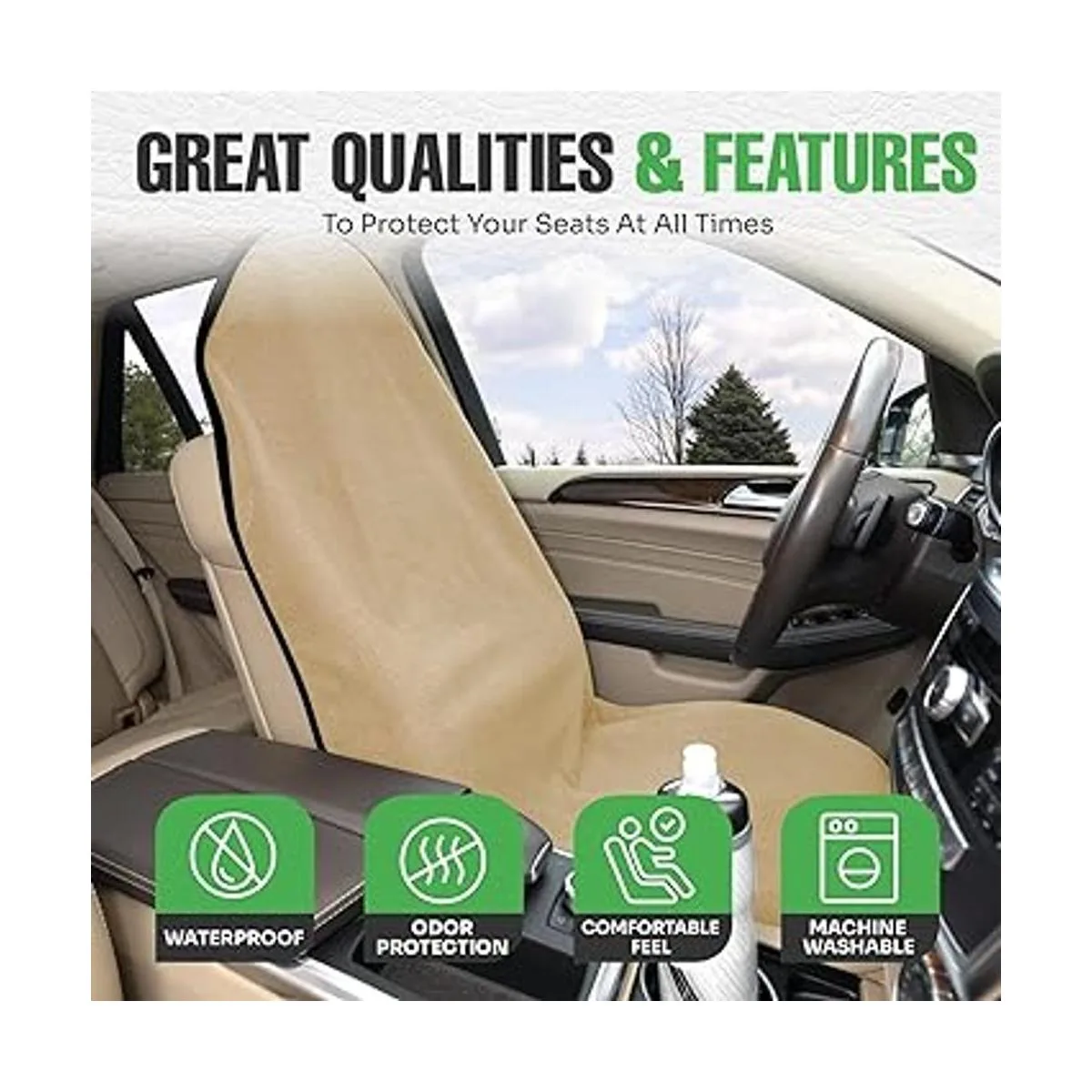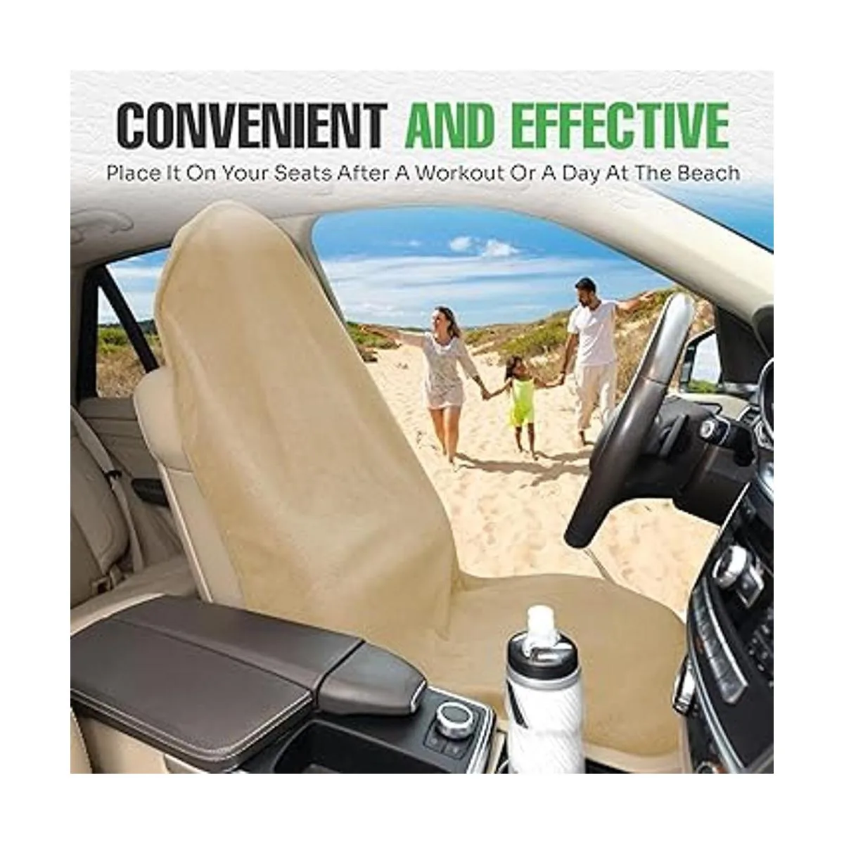 lebogner Funda de asiento de automóvil impermeable para después del gimnasio, correr, nadar, playa y senderismo, protector de asiento antideslizante de ajuste universal para automóviles, SUV y camiones, lavable a máquina, beige