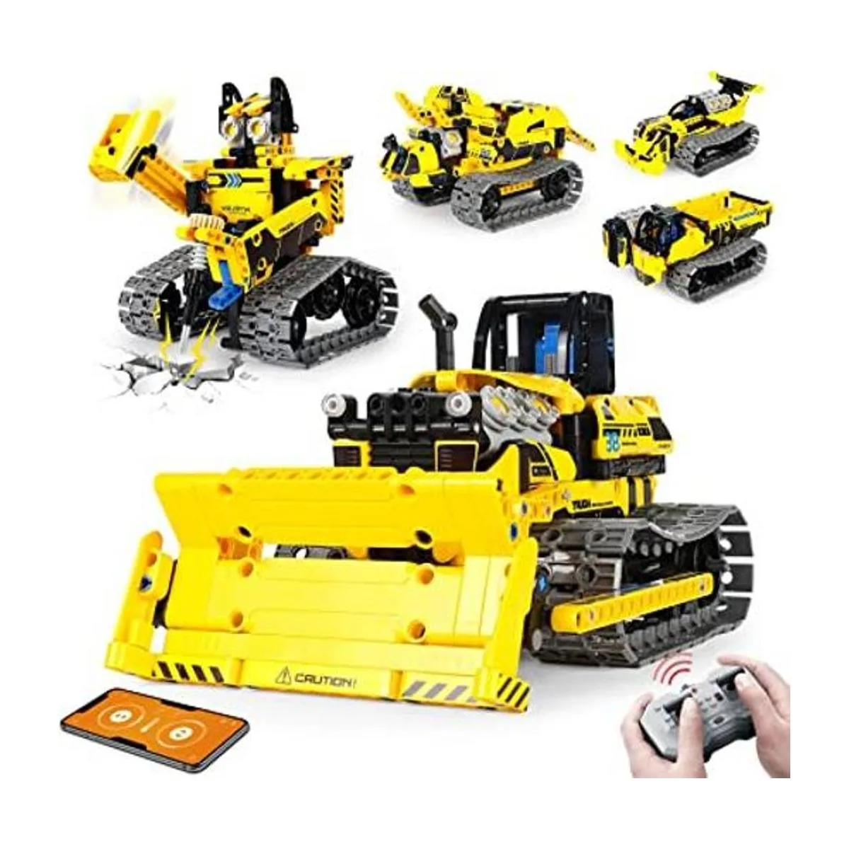 LECPOP Kit de construcción de control remoto, proyectos STEM 5 en 1, bulldozer RC, robotcamiones volquetes para niños de 8 a 12 años, juguetes de ingeniería de bloques de construcción para niños, regalos ideales para niños y niñas