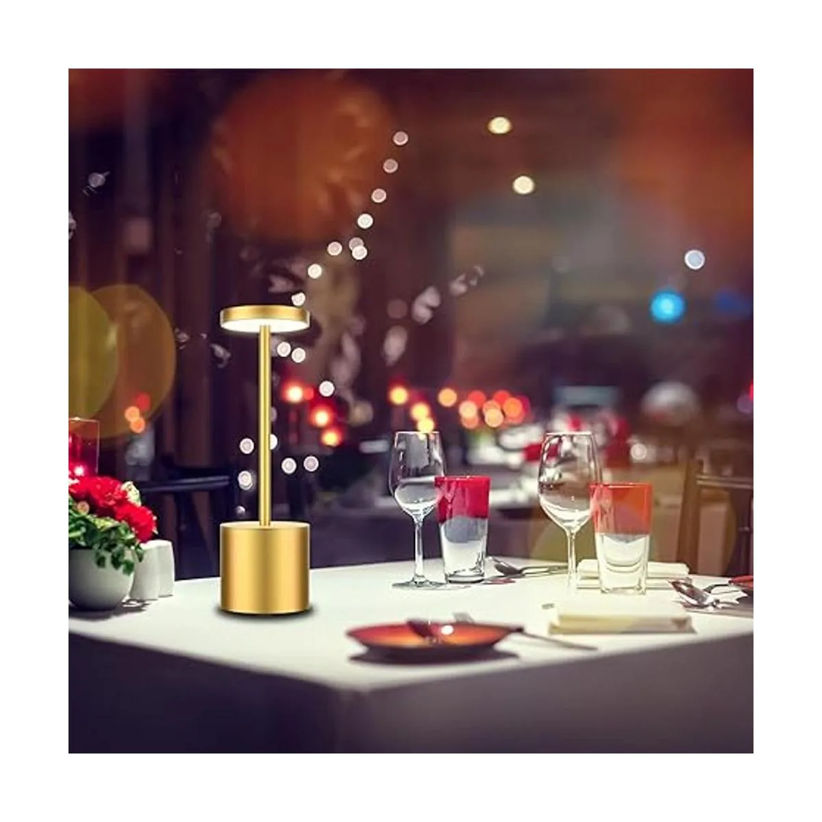 LED Cordless Table Lamps, Portable Rechargeable Battery Operated Lamp, Modern Metal 2 Level Dimmable Indoor and Outdoor Cordless Lamp,Desk Lamp for Home OfficeRestaurantBarCafeBedroom. Gold