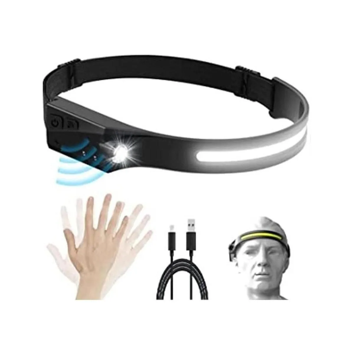 Sensor de movimiento: esta lámpara frontal LED premium tiene un sensor de movimiento de alta calidad. Cuando el interruptor del sensor está encendido, la luz reacciona simplemente agitando la mano delante del sensor. Comodidad manos libres dondequiera que estés y lo que estés haciendo, ya sea acampando o trabajando en espacios reducidos.