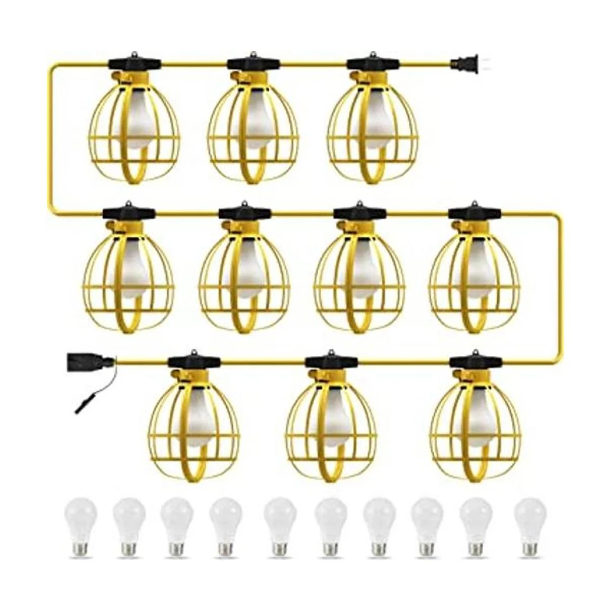 Fácil instalación: cable de extensión de 100 pies con 10 enchufes de base media, nuestras luces de construcción se pueden instalar en cualquier lugar que desees colgar.
