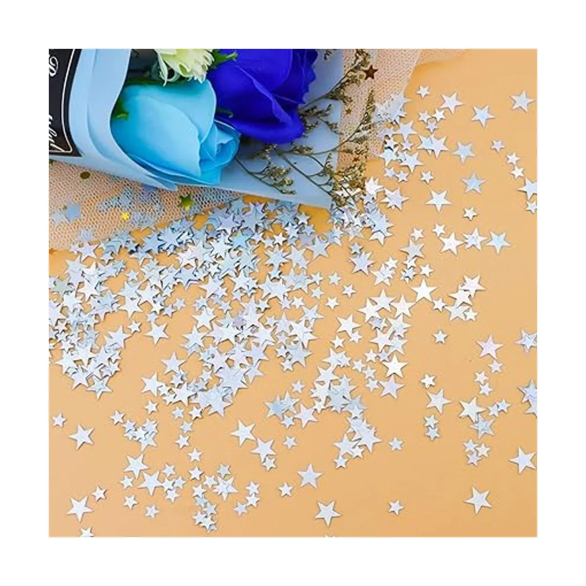 Material de alta calidad: el confeti de estrellas está hecho de material plástico de alta calidad, brillante y no se decolora fácilmente, seguro y fiable, no se rompe ni deforma fácilmente.