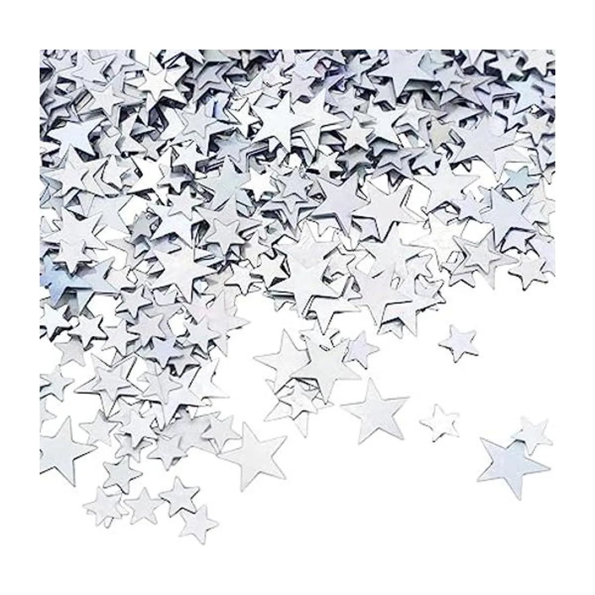 Estrellas con purpurina: el confeti de estrella con textura metálica en color plateado, la superficie es lisa, brillante y brillante, muy llamativo bajo la luz; el color brillante añadirá más ambiente festivo.