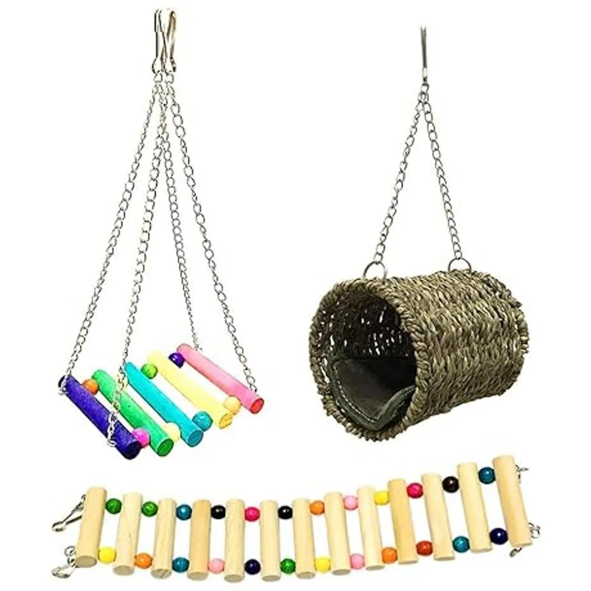 Leeko Hamster para mascotas, juego de juguetes para colgar en la casa, jaula, juguetes para pequeños animales, azucareros, ardilla, chinchilla, hámster, rata, jugando a dormir
