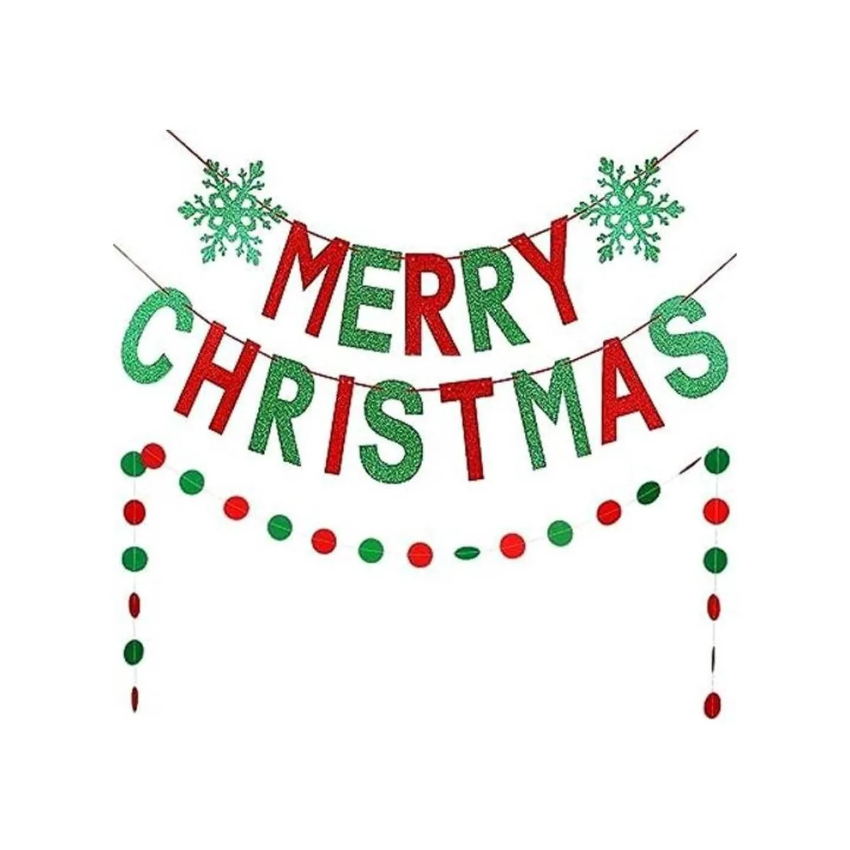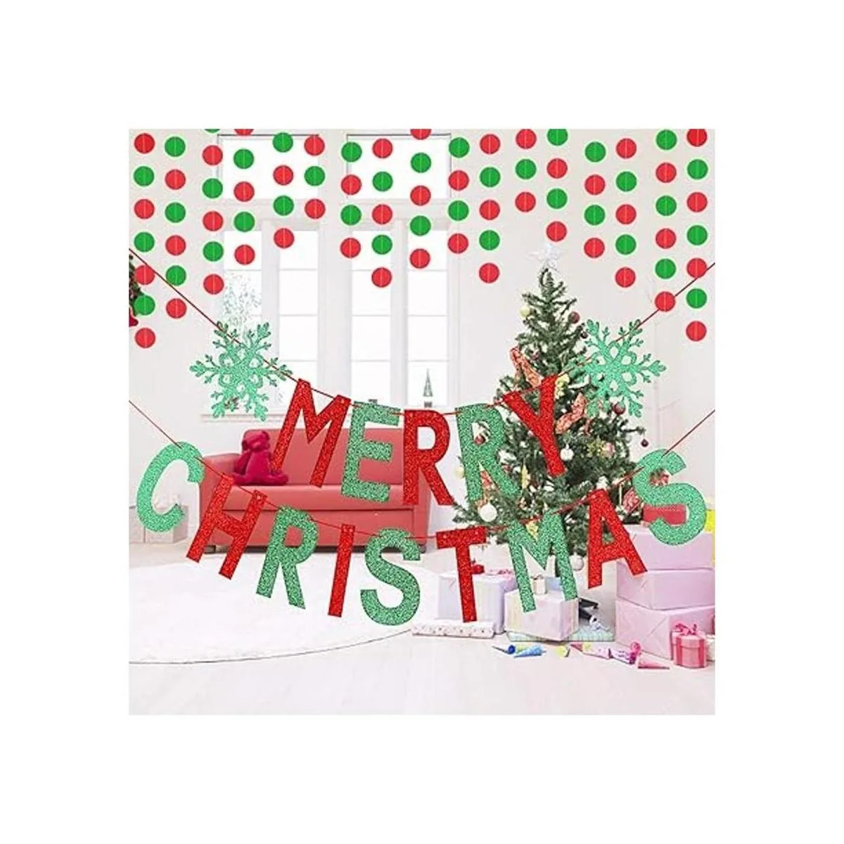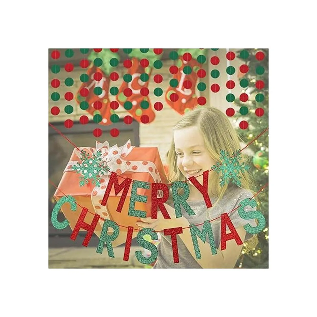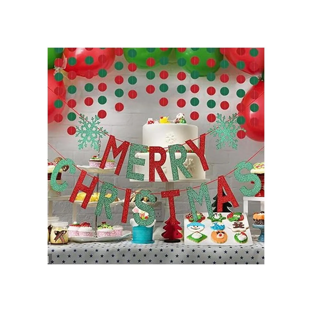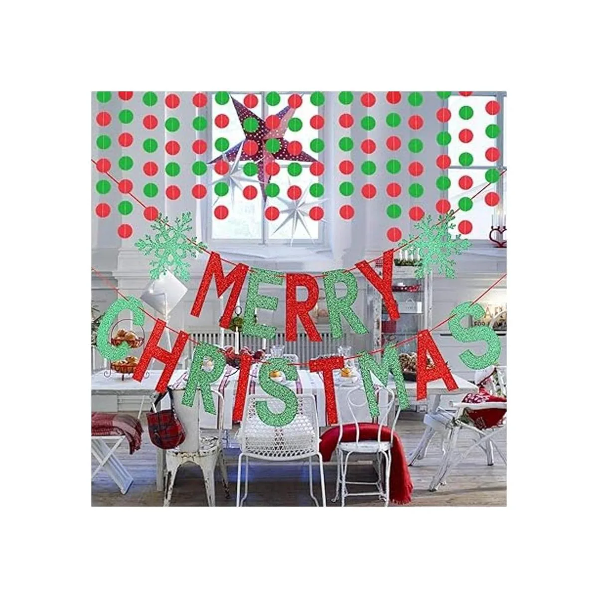 Lo que obtendrás: incluye pancarta de feliz Navidad roja y verde guirnalda de puntos circulares rojos y verdes, perfecta para decoraciones de fiesta de Navidad, fácil montaje
