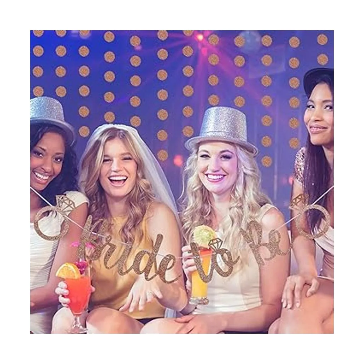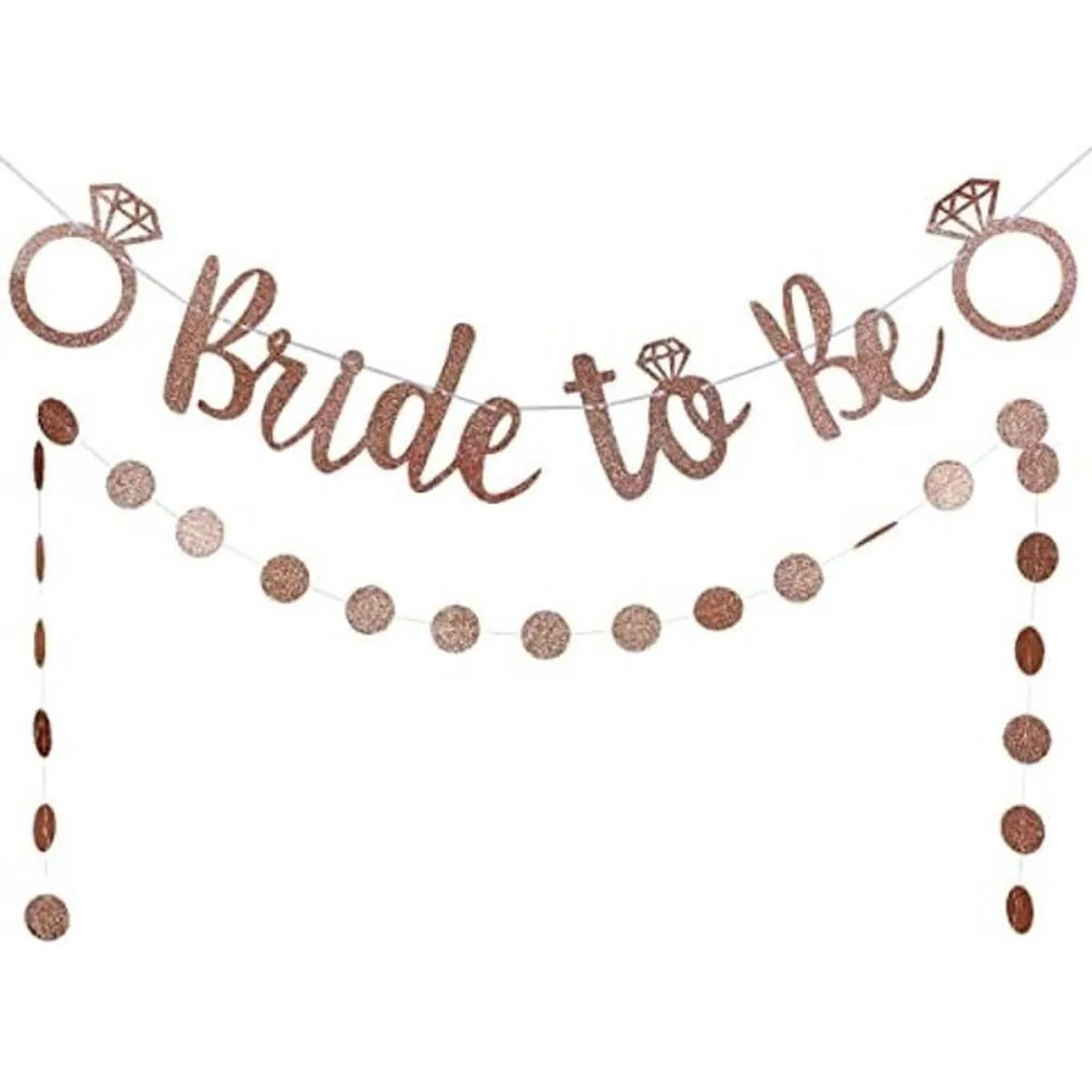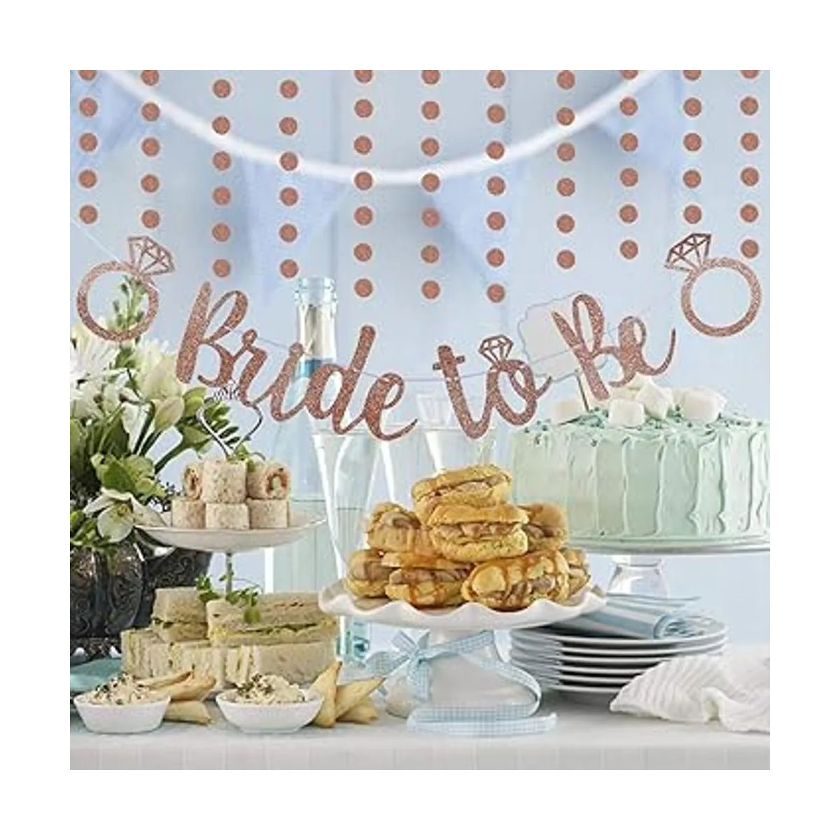 Lo que obtendrás: 1 pancarta de oro rosa con purpurina para novia, 1 guirnalda de puntos circulares brillantes de oro rosa, material brillante que añade una sensación de alta gama a la fiesta, perfecta para decoración de despedida de soltera, vale la pena comprarlo.