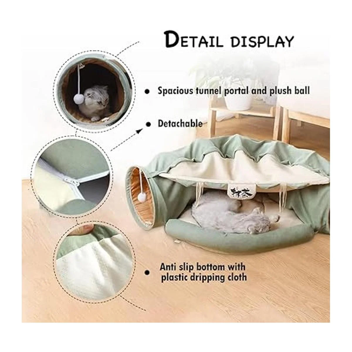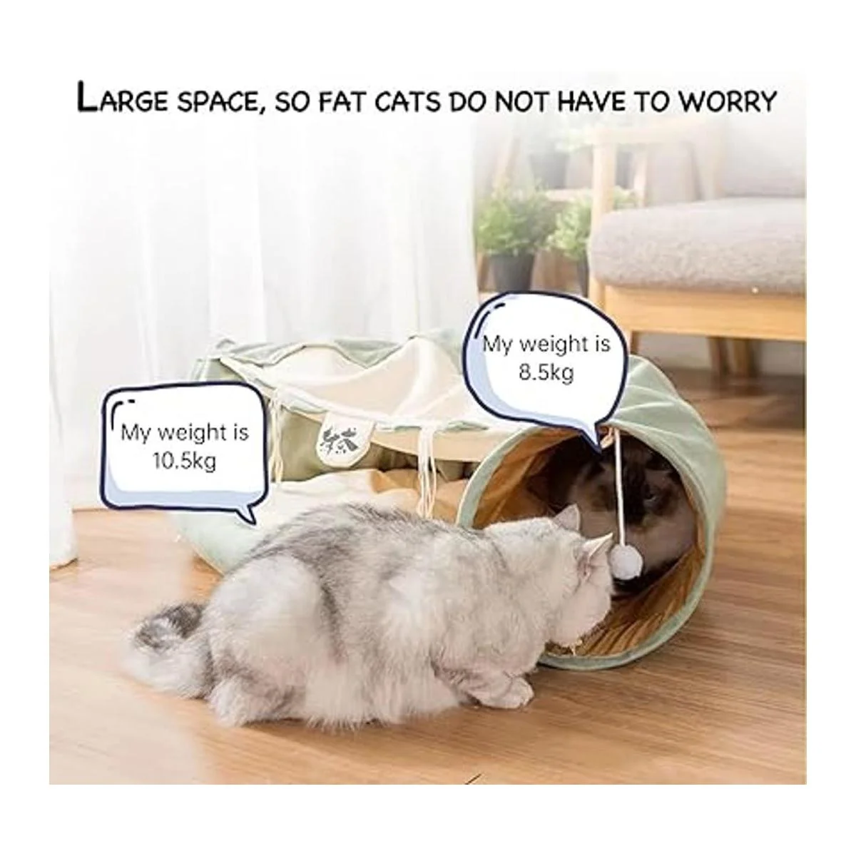 Diseño creativo 2 en 1: hermoso y práctico nido de túnel para gatos, la combinación perfecta de túnel de juguete y cama para gatos, papel de sonido integrado y juguetes, añade más diversión. Juguetes rascadores unidos a cada extremo del tubo. Mantén a tus mascotas en movimiento y ejercicio. También es ideal para dormir una siesta cuando se sienten como descansar.