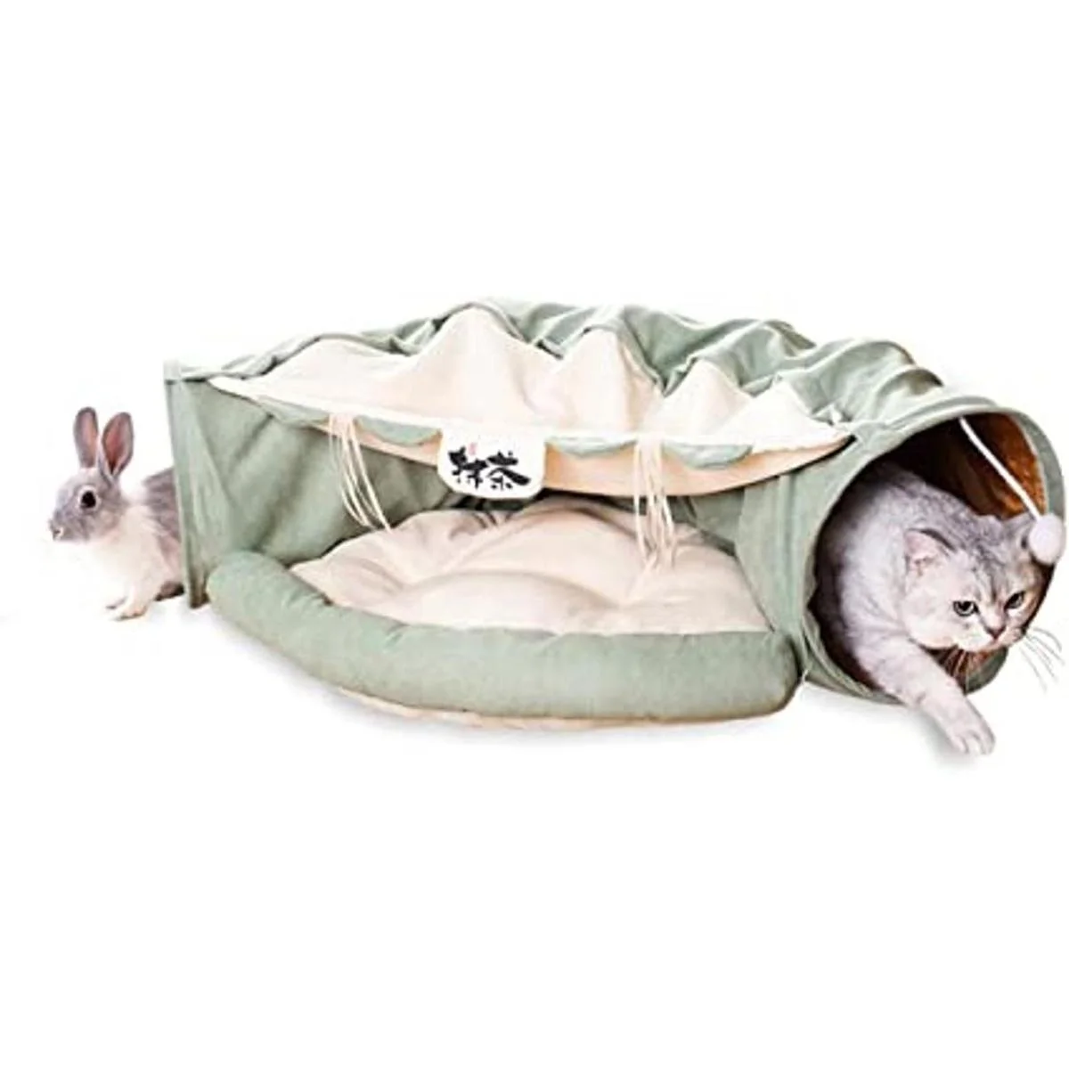 LEFTSTARER Túneles plegables 2 en 1 para gatos de interior, camas y escondite para mascotas, perros, conejos, tubos de túnel suaves para el hogar, juguetes con alfombrilla extraíble lavable