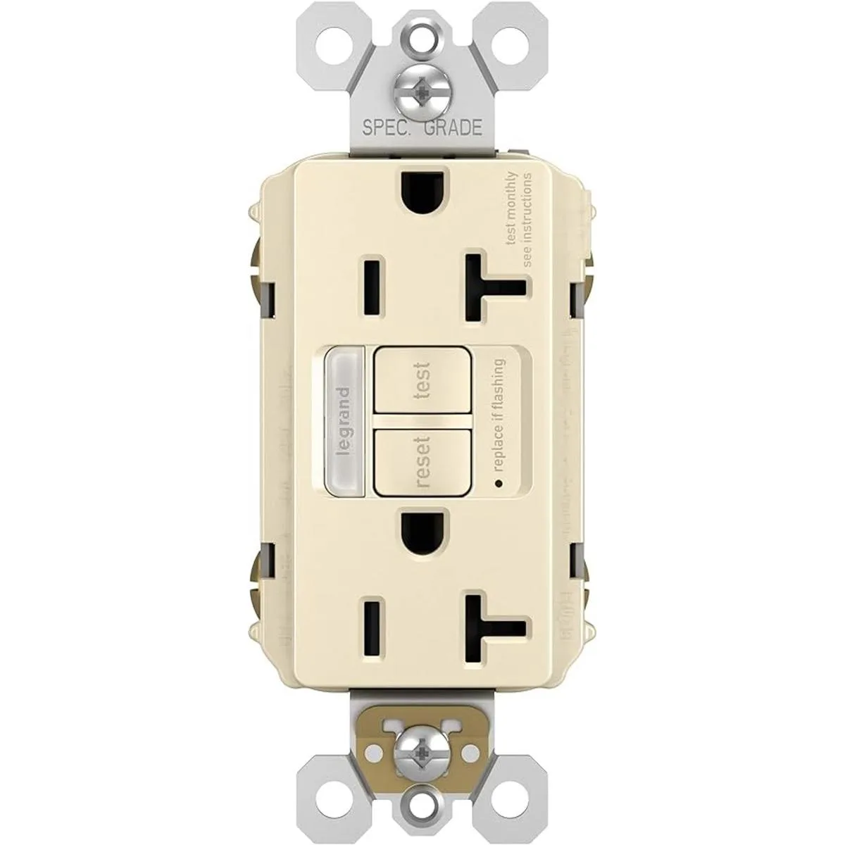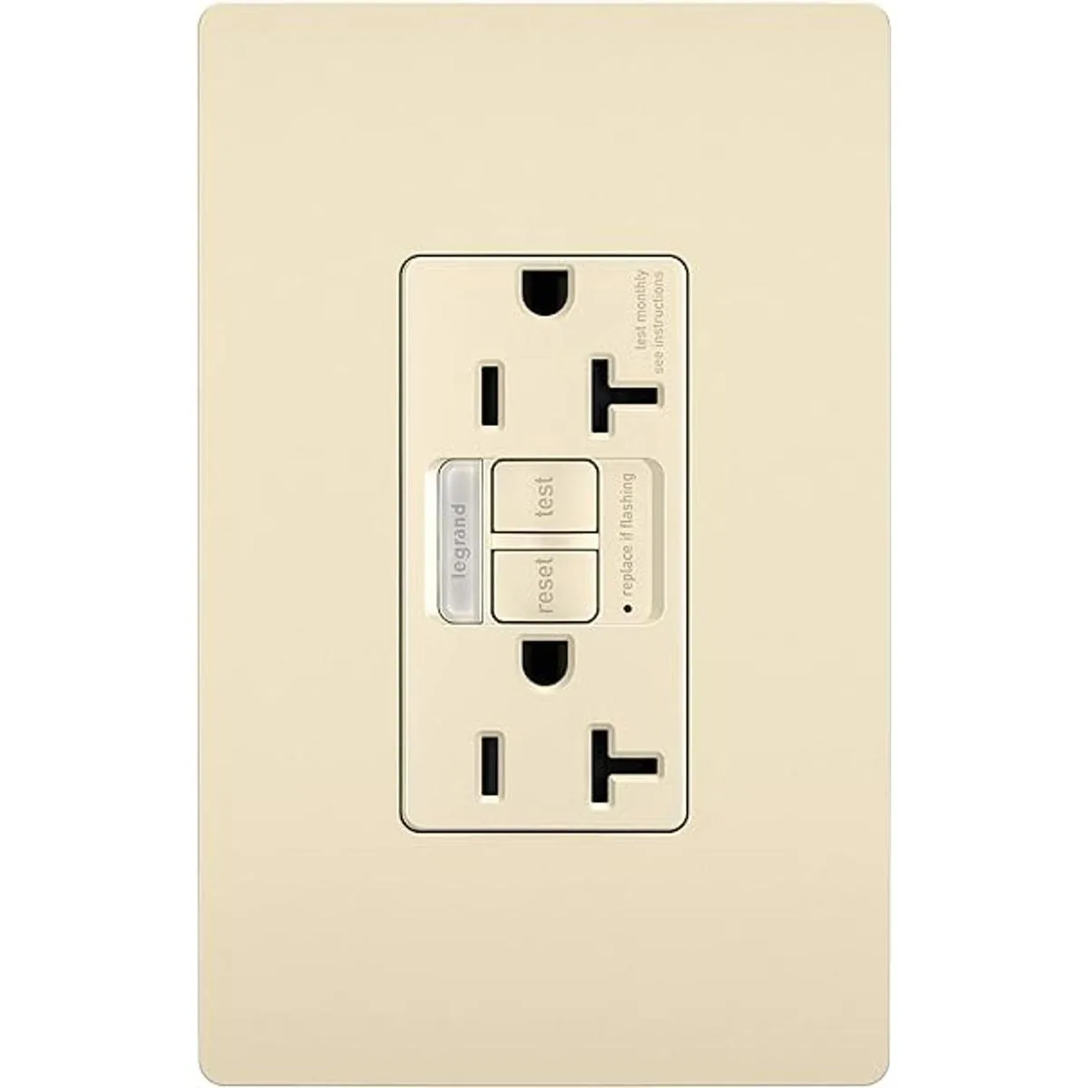 Legrand Luz nocturna radiante, tomas GFCI, seguras para niños, resistentes a manipulaciones, almendra ligera, 20 amperios, 2097NTLTRLA