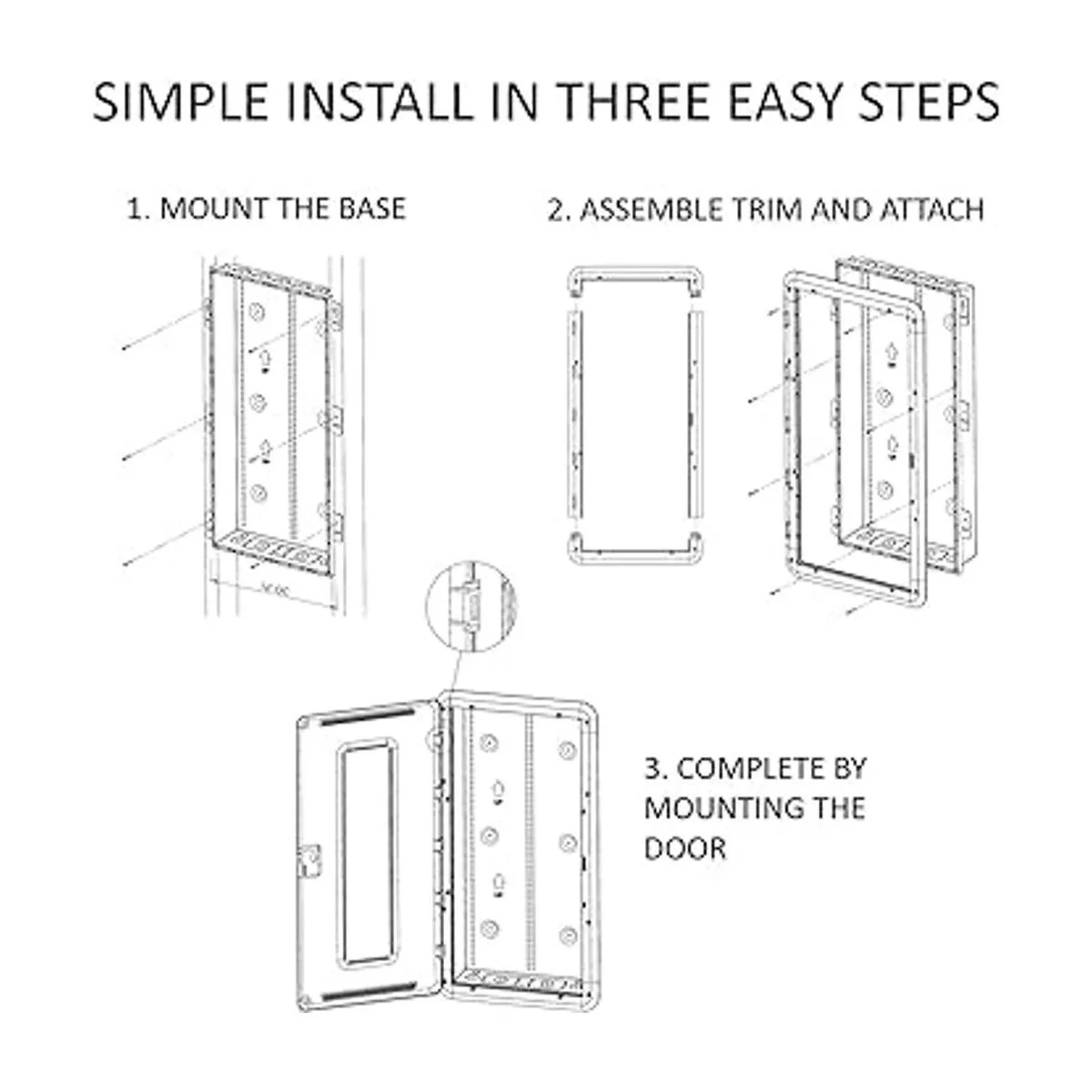 La puerta reversible con bisagras se ajusta fácilmente en el anillo de moldura integrado sin herramientas y se balancea a 180 grados