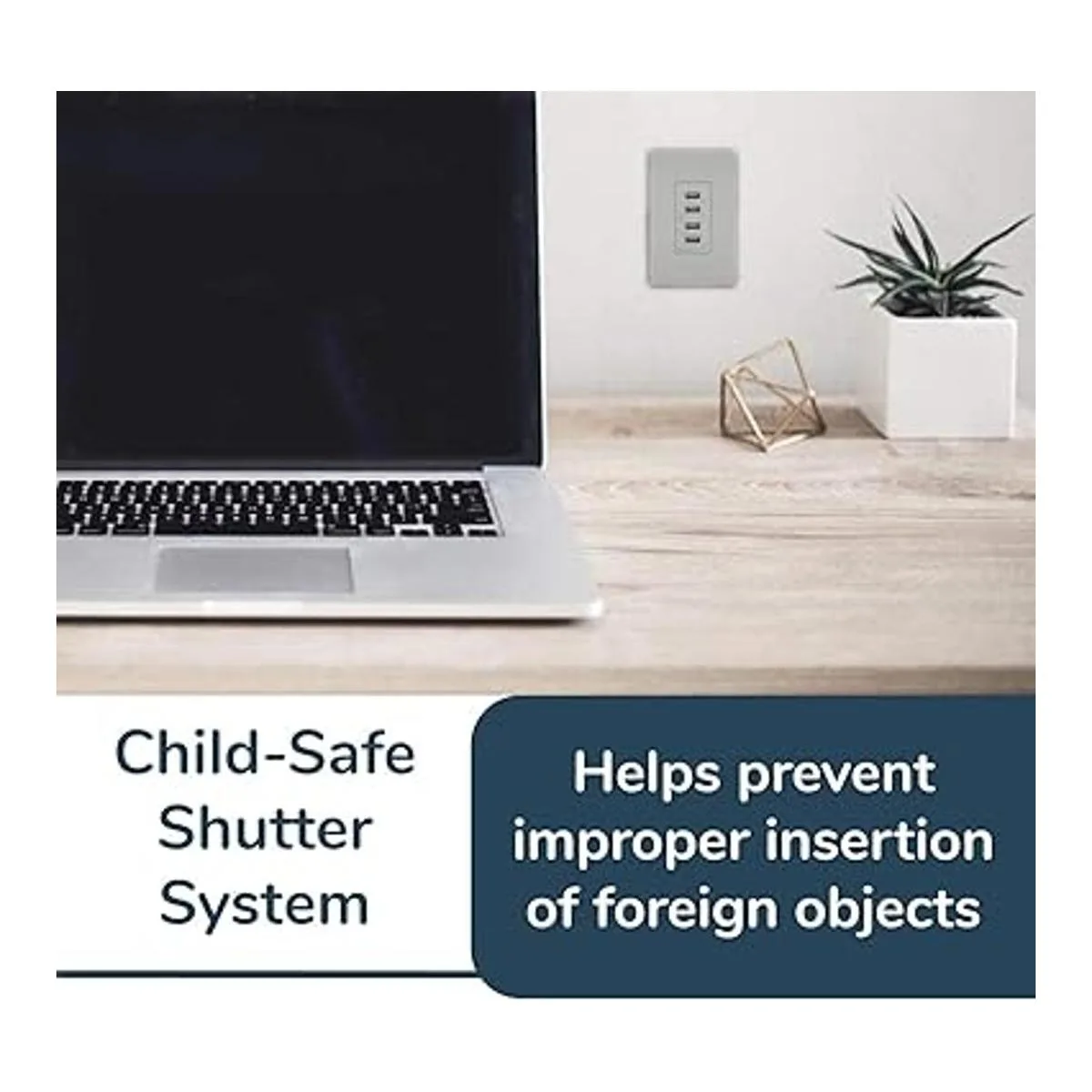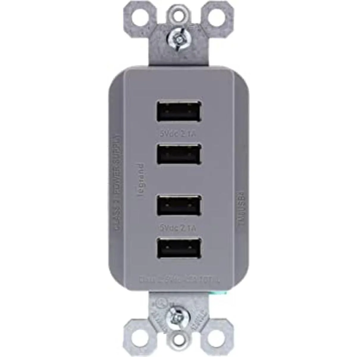 Legrand Radiante 15 Amp Decorator Outlet de pared con cargador USB de 4.2 Amp, Quad, estación de carga multipuerto, gris, TM8USB4GRYCC6