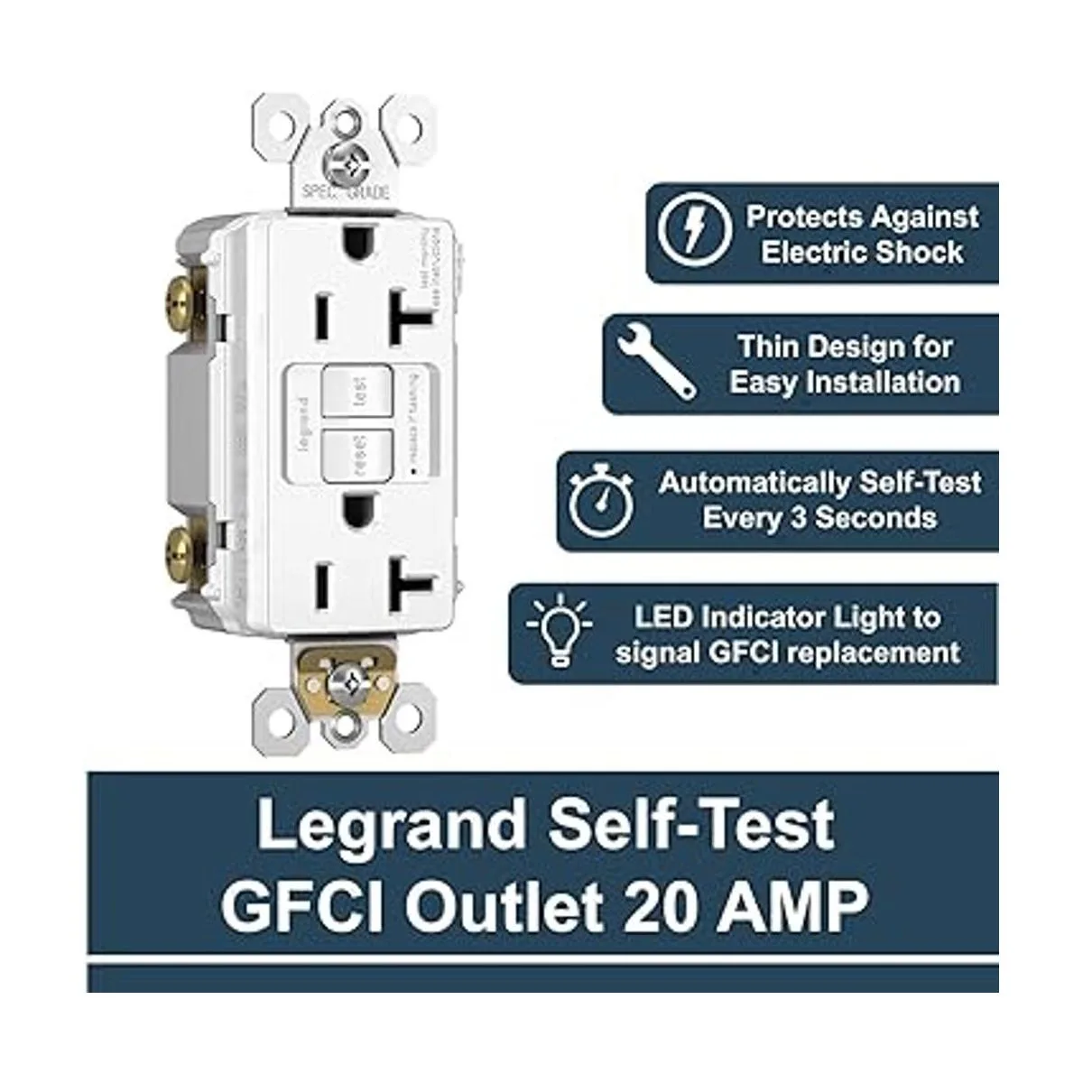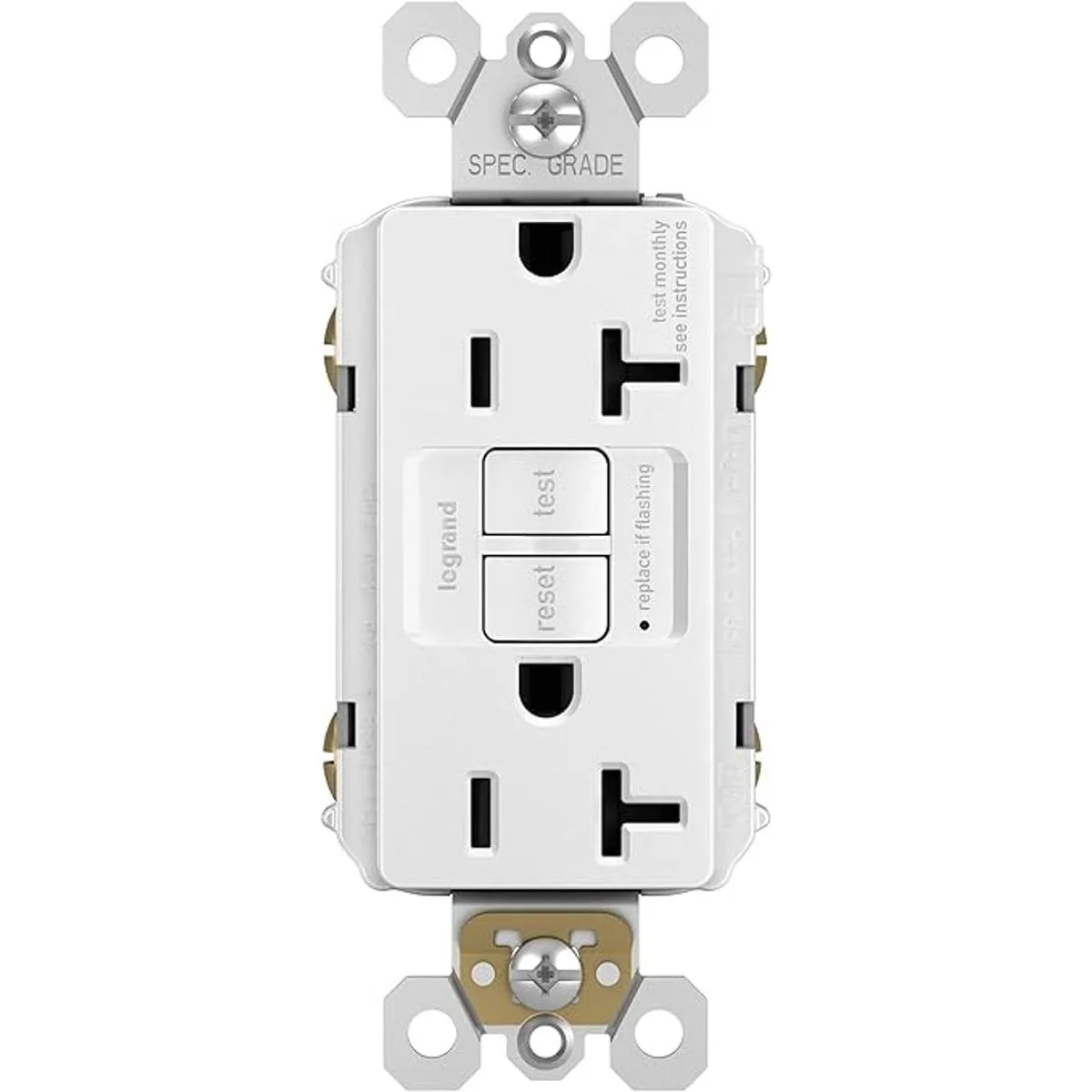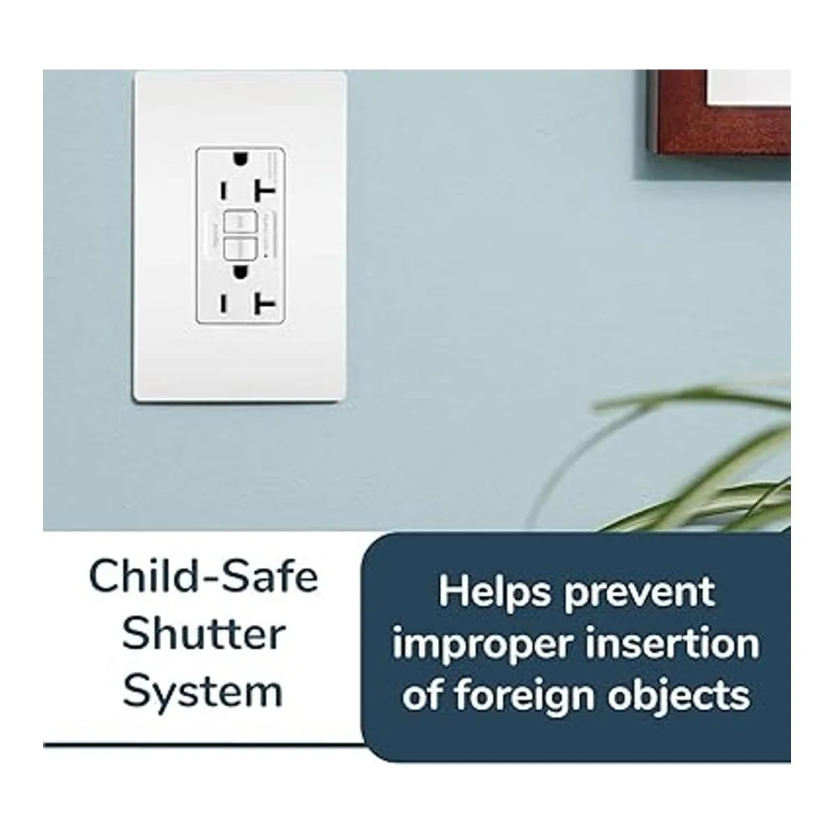 Legrand Toma de corriente GFCI radiante, 20 amperios, segura para niños, salidas resistentes a manipulaciones, blanco, 2097TRWCCD12