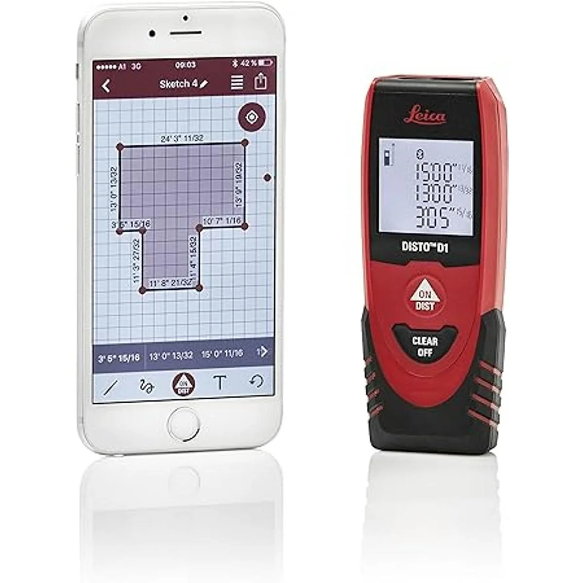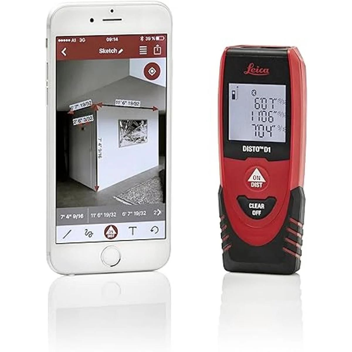 Leica DISTO D1 Medida de distancia láser de 120 pies con Bluetooth 4.0, negrorojo