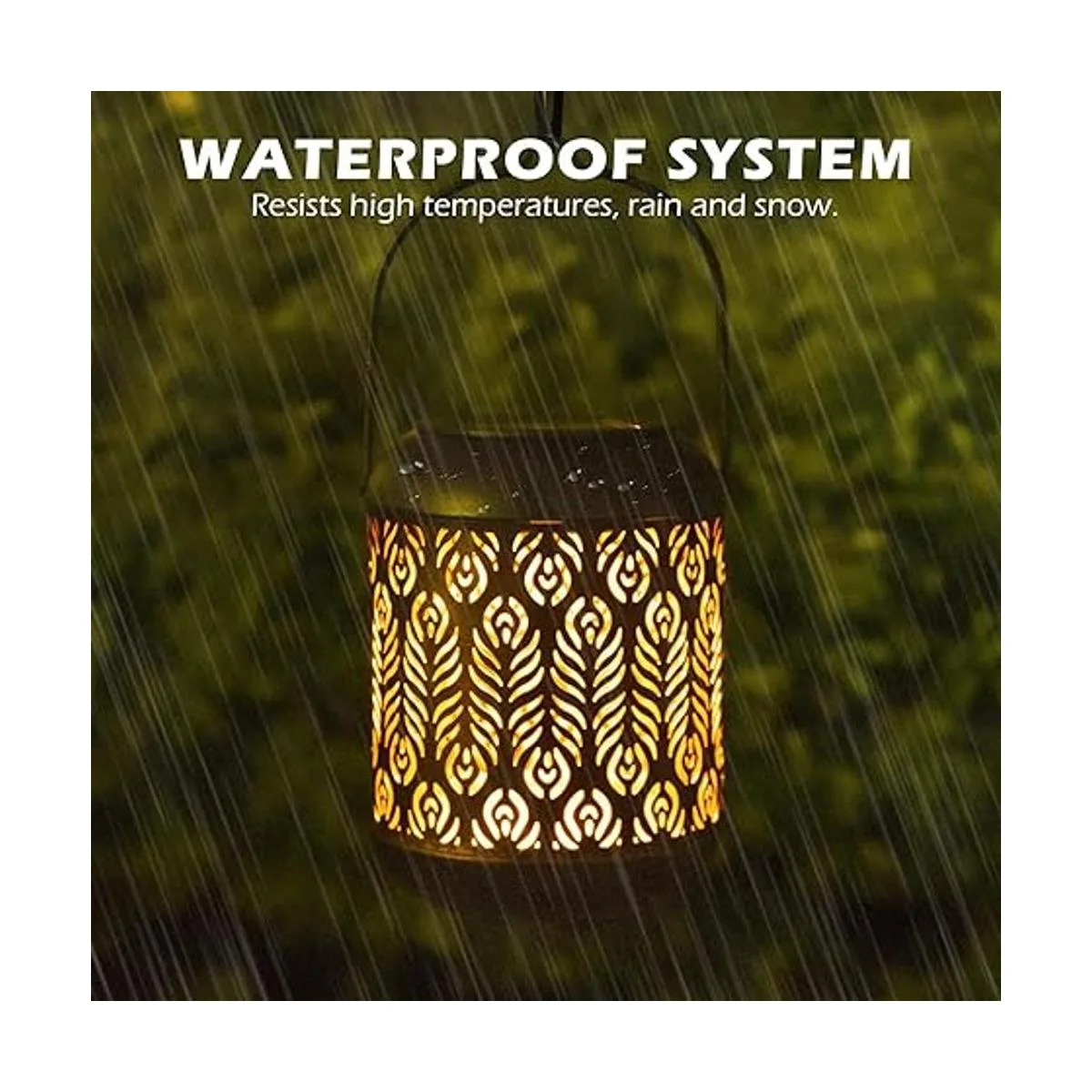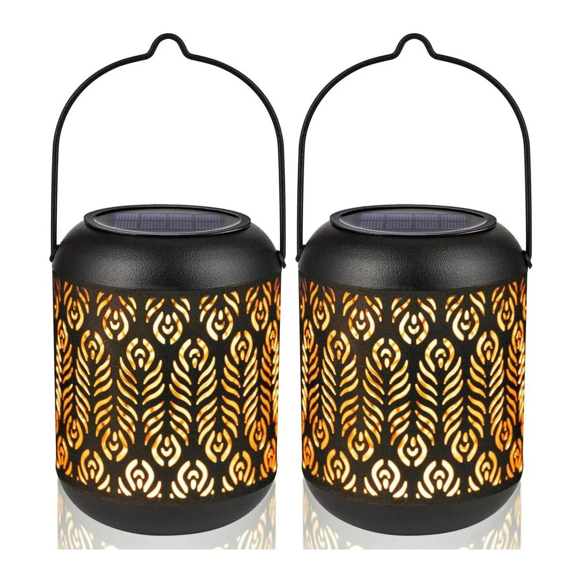 LeiDrail Farol solar colgante para exteriores, luz decorativa de metal, luz blanca cálida, luz LED impermeable para paisajes de mesa, camino, fiesta, patio, paquete de 2