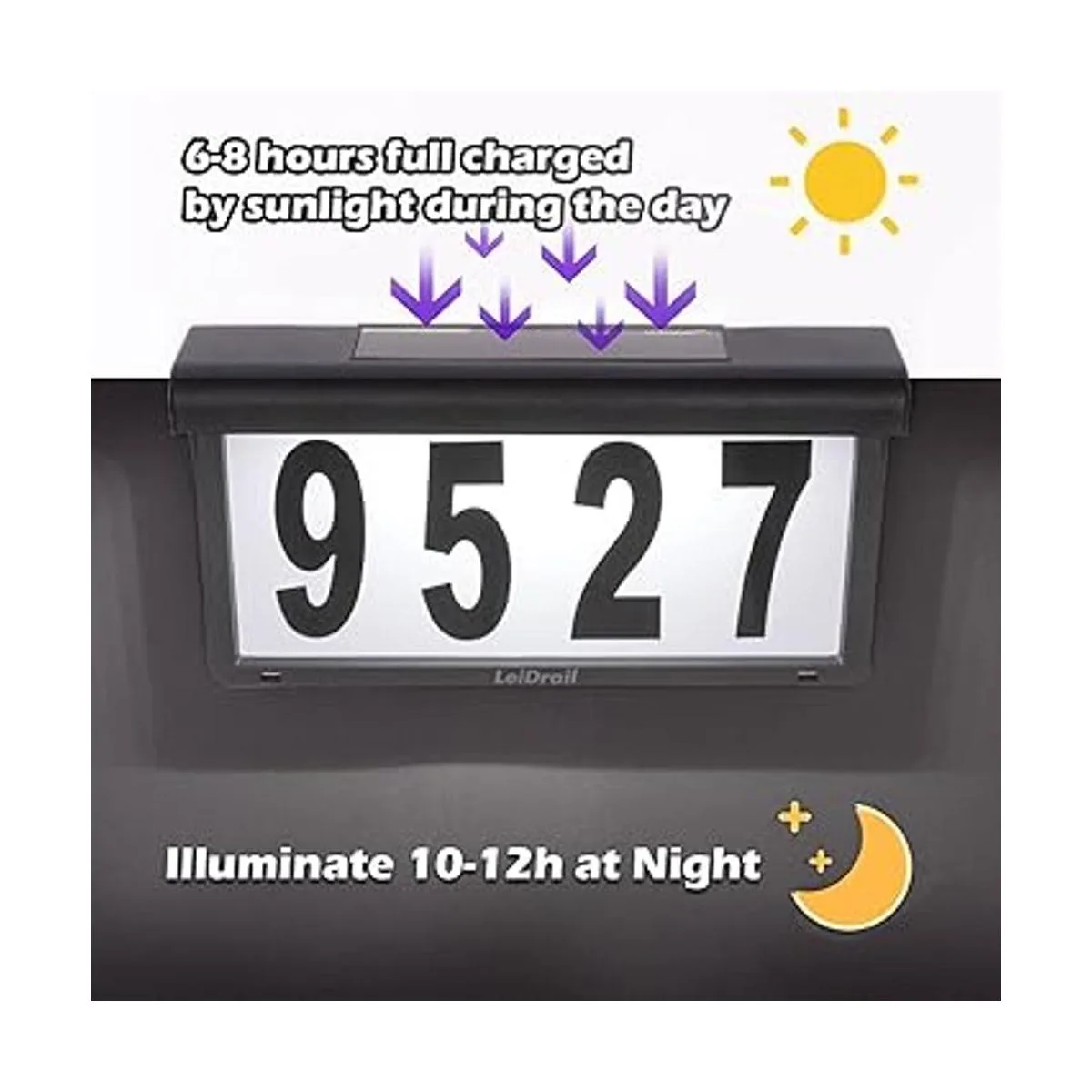 Larga duración y transparencia: ilumina 1012 horas por la noche después de 68 horas de carga completa durante el día. 6 LED SMD blancos, 12 lúmenes de brillo, los números de casa se pueden ver claramente por la noche.
