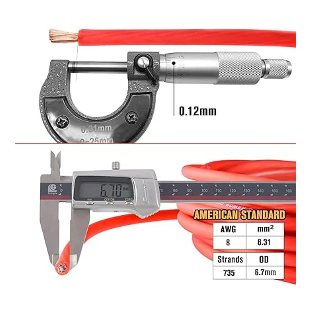 Cable de alimentación CCA de 20 pies, 8 AWG, cable de tierra CCA de 3 pies, 8 AWG