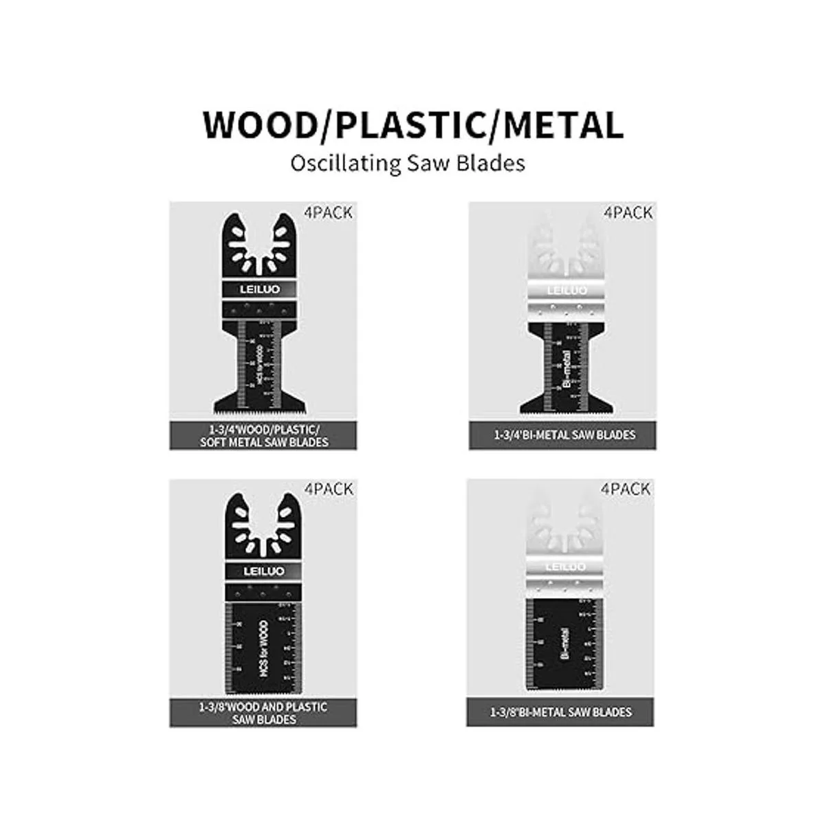 LEILUO Juego de 31 cuchillas multiherramientas para madera y paneles de yeso oscilantes, herramientas universales de liberación rápida y multiherramienta empaquetadas por bolsa de almacenamiento para Dewalt Milwaukee Makita y más