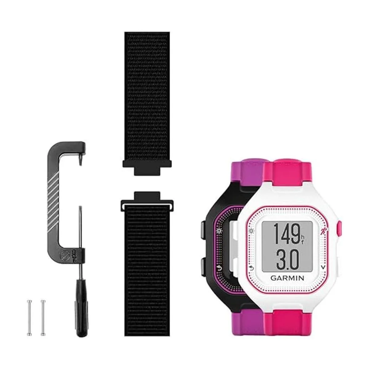 Leiou Correa de nailon tejida compatible con Garmin Forerunner 25 Band de repuesto Sport Mesh Watchband, funciona con reloj de versión pequeña, negro oscuro
