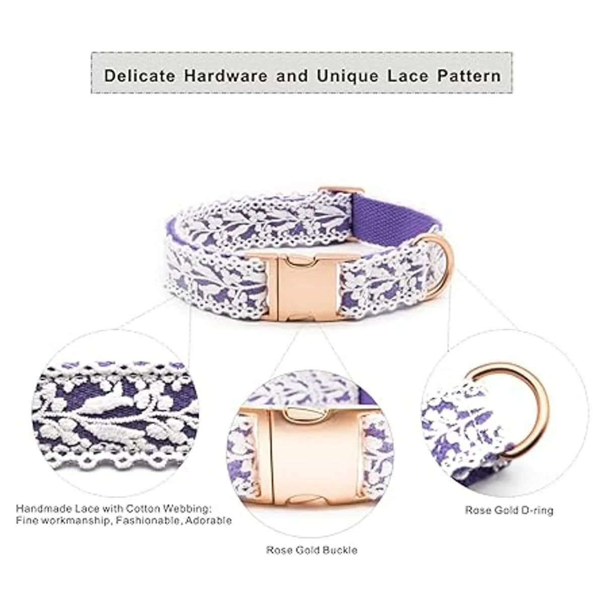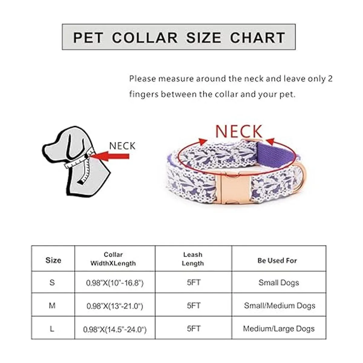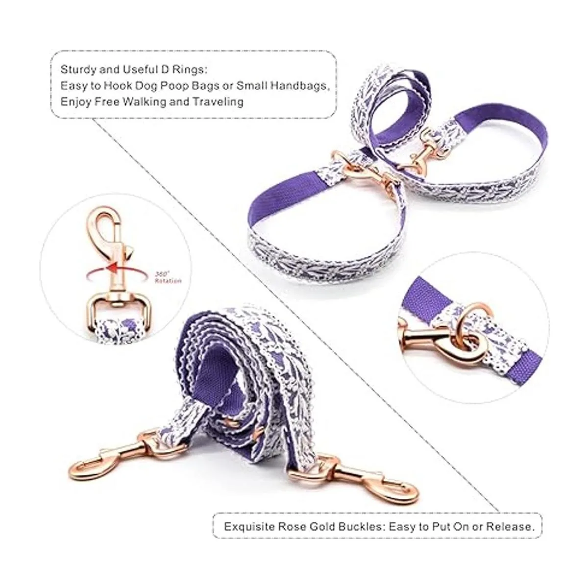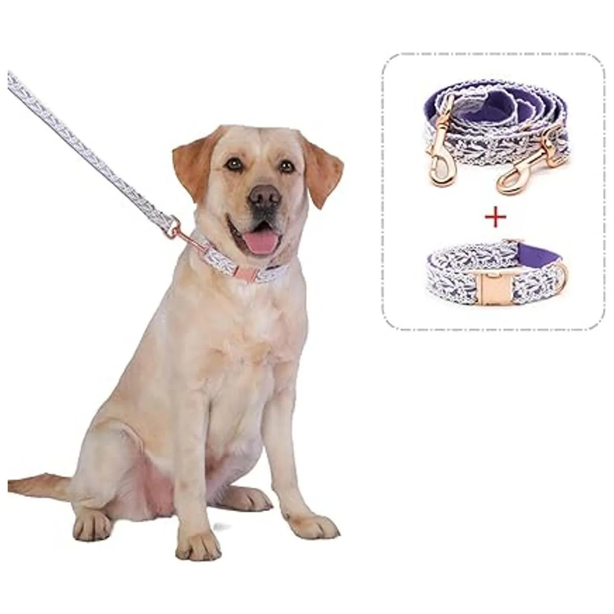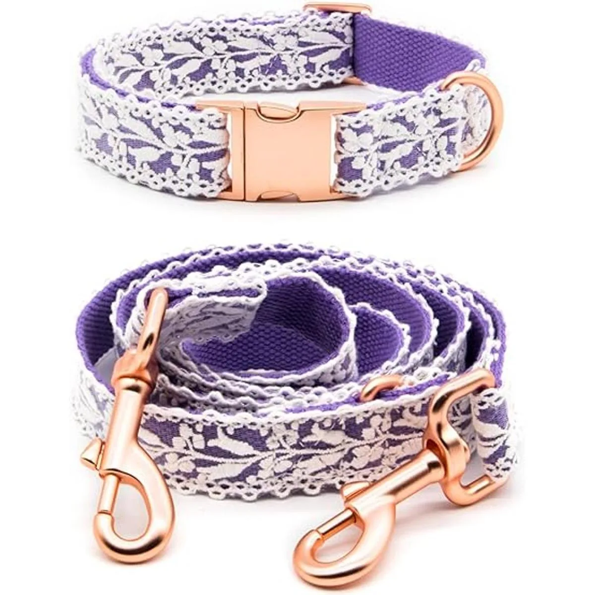 LEKAIGO Juego de collar y correa para perro, encaje de algodón hecho a mano de 4 a 5 pies, ajustables, cómodos, únicos collares y correas para perros y gatos pequeños y medianos
