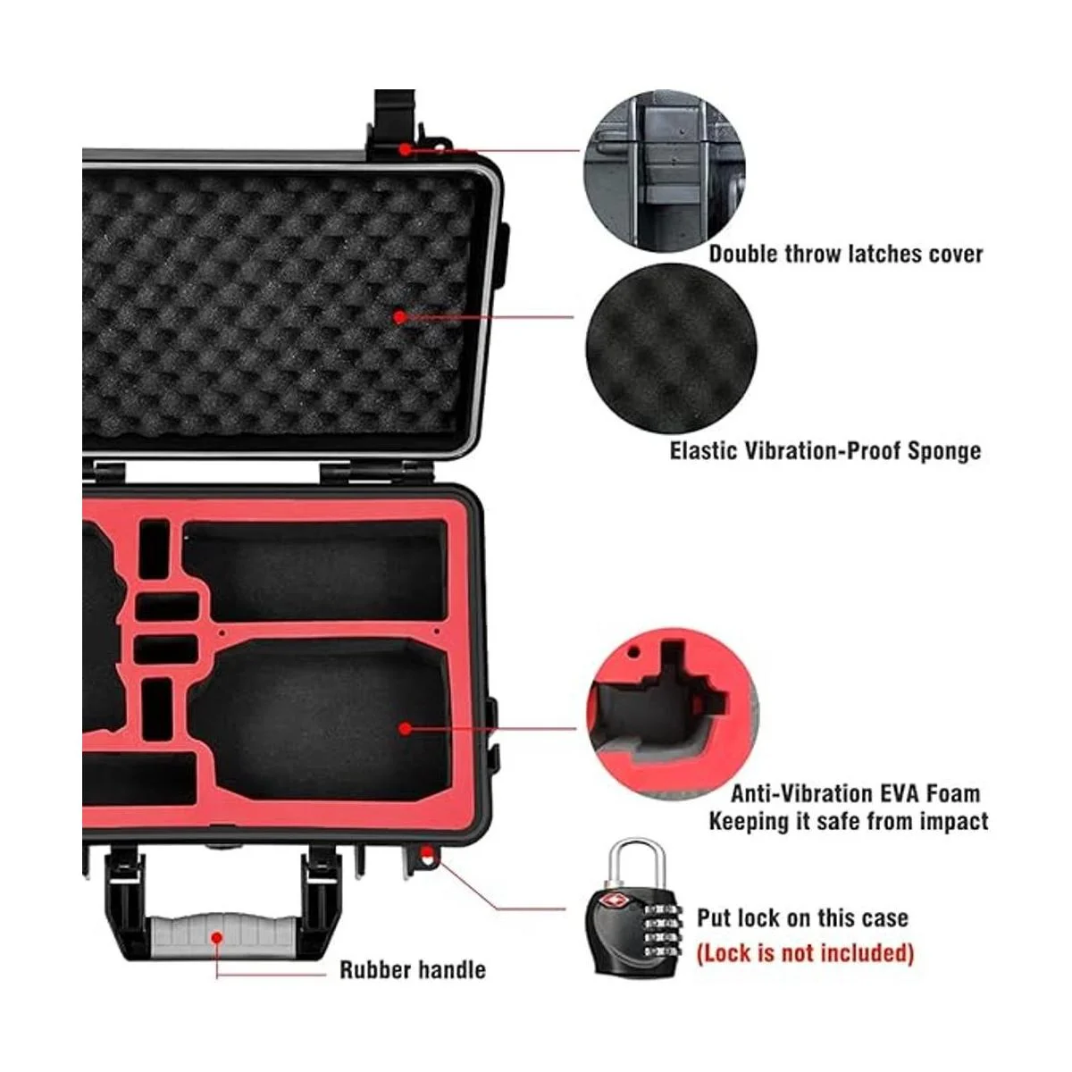 Materiales de alta calidad: carcasa exterior ABS a prueba de abrasión y golpes. Rellena internamente una espuma de esponja elástica personalizada, protegiendo tu dron Mavic Mini 2 y accesorios de arañazos.
