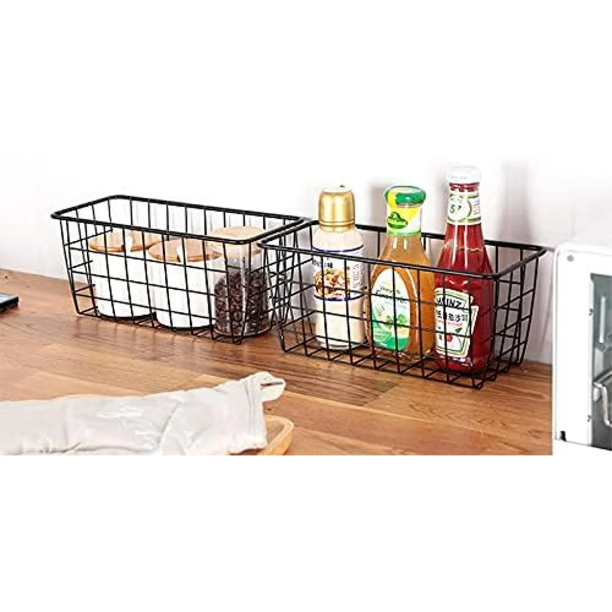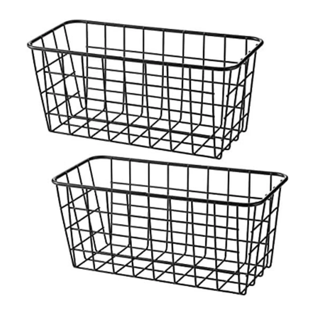 LeleCAT Canastas pequeñas de alambre para armarios de cocina, despensa, bolsas de té y condimentos, baño, negro, paquete de 2 unidades