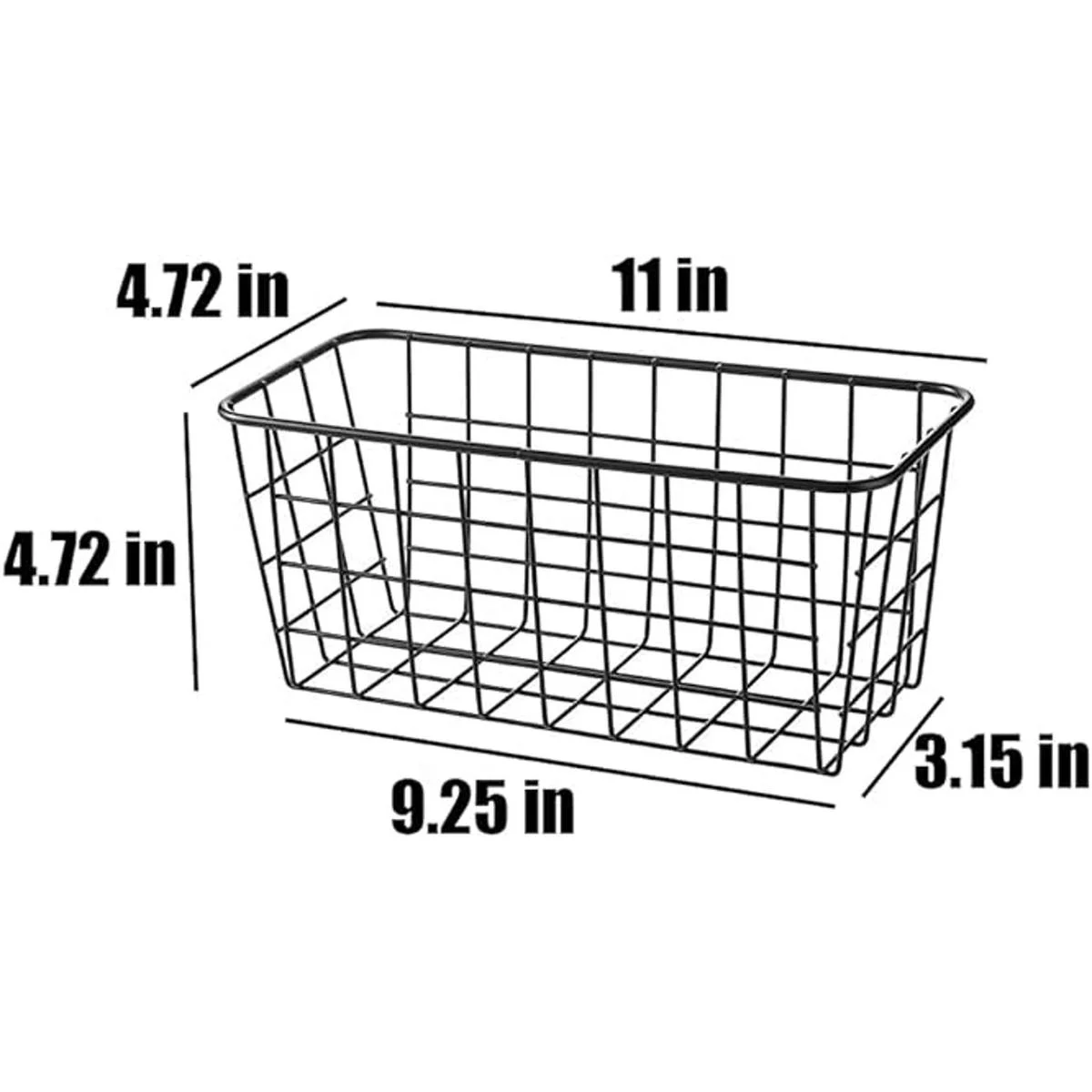 Tamaño de las cestas de alambre: parte superior: 11 x 4.72 pulgadas, parte inferior: 9.37 x 3.74 pulgadas, altura total de 4.72 pulgadas. Juego de 2 cestas de alambre para un almacenamiento elegante y dinámico en cualquier habitación