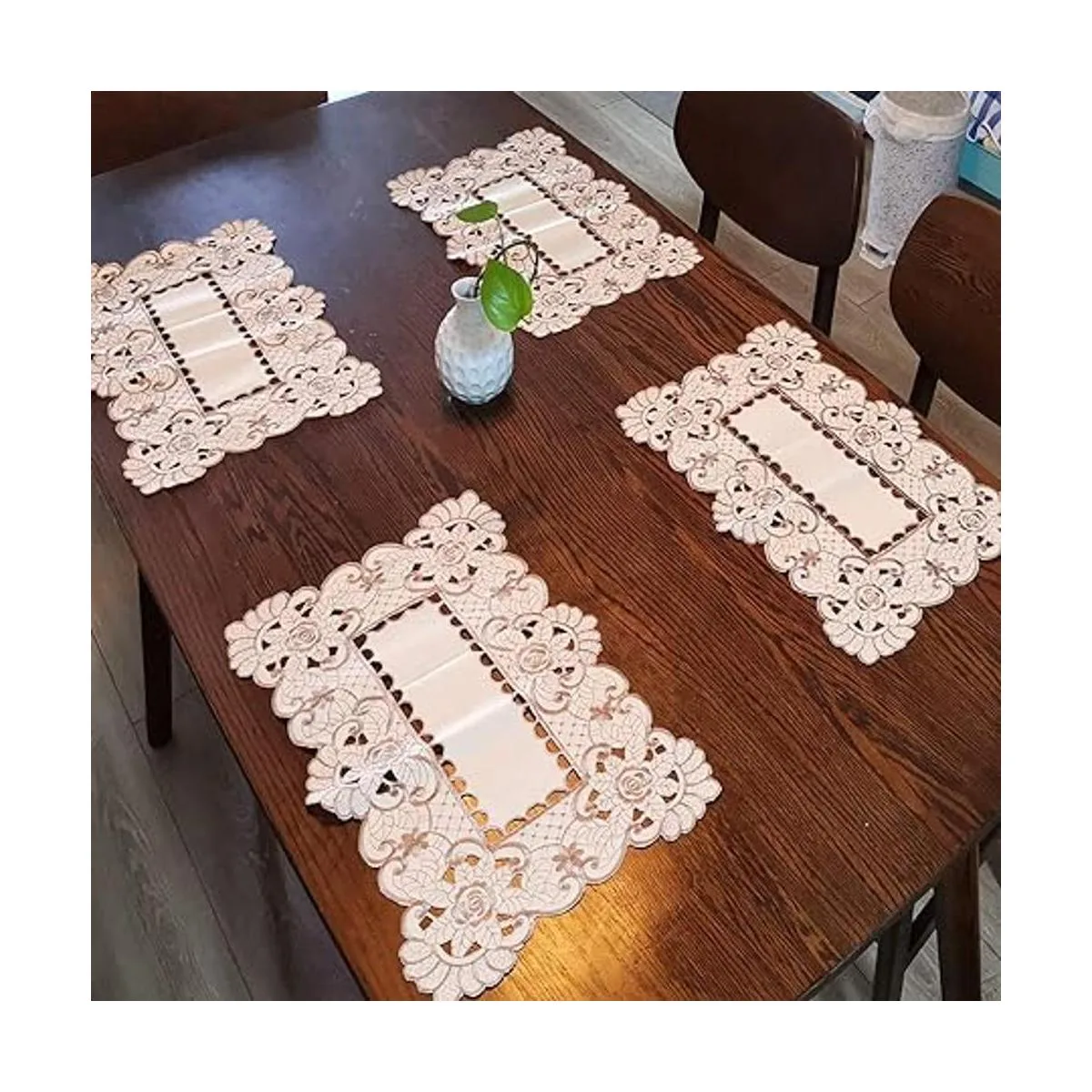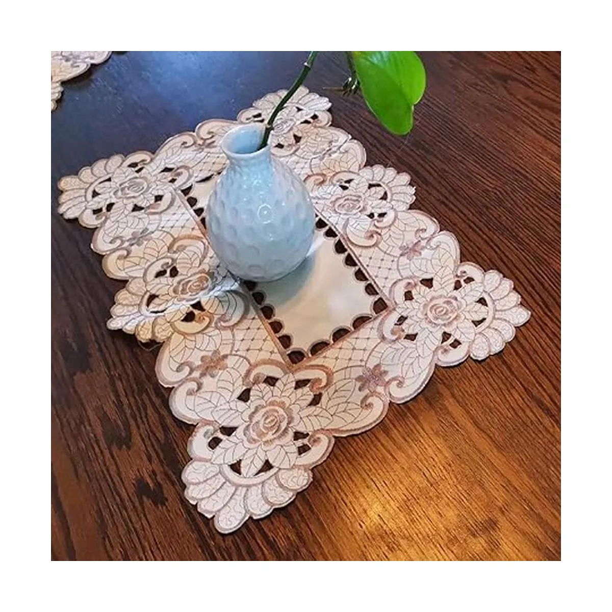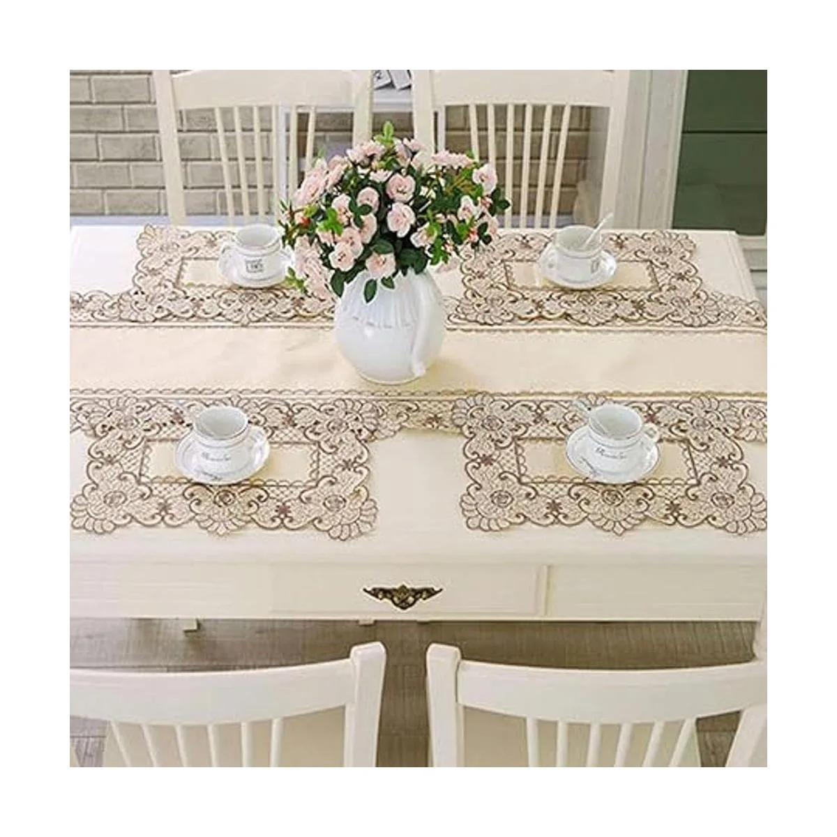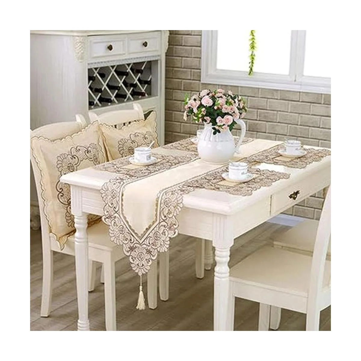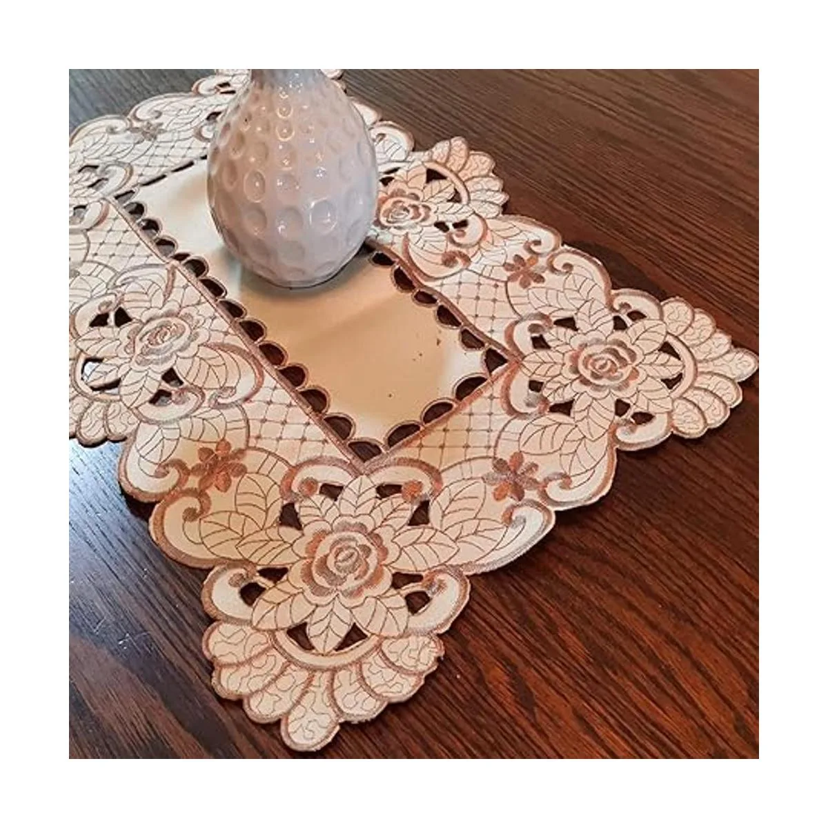 LeLehome Mantel de encaje bordado con flores cafés, color crema y beige, diseño clásico y tela que no se arruga para mesa de comedor