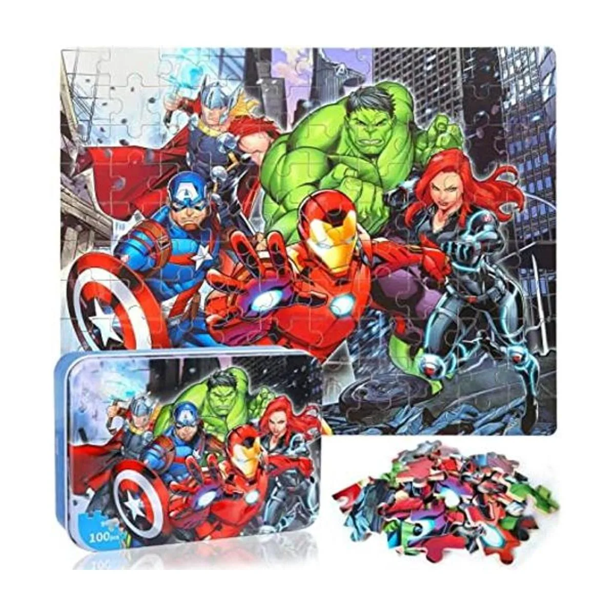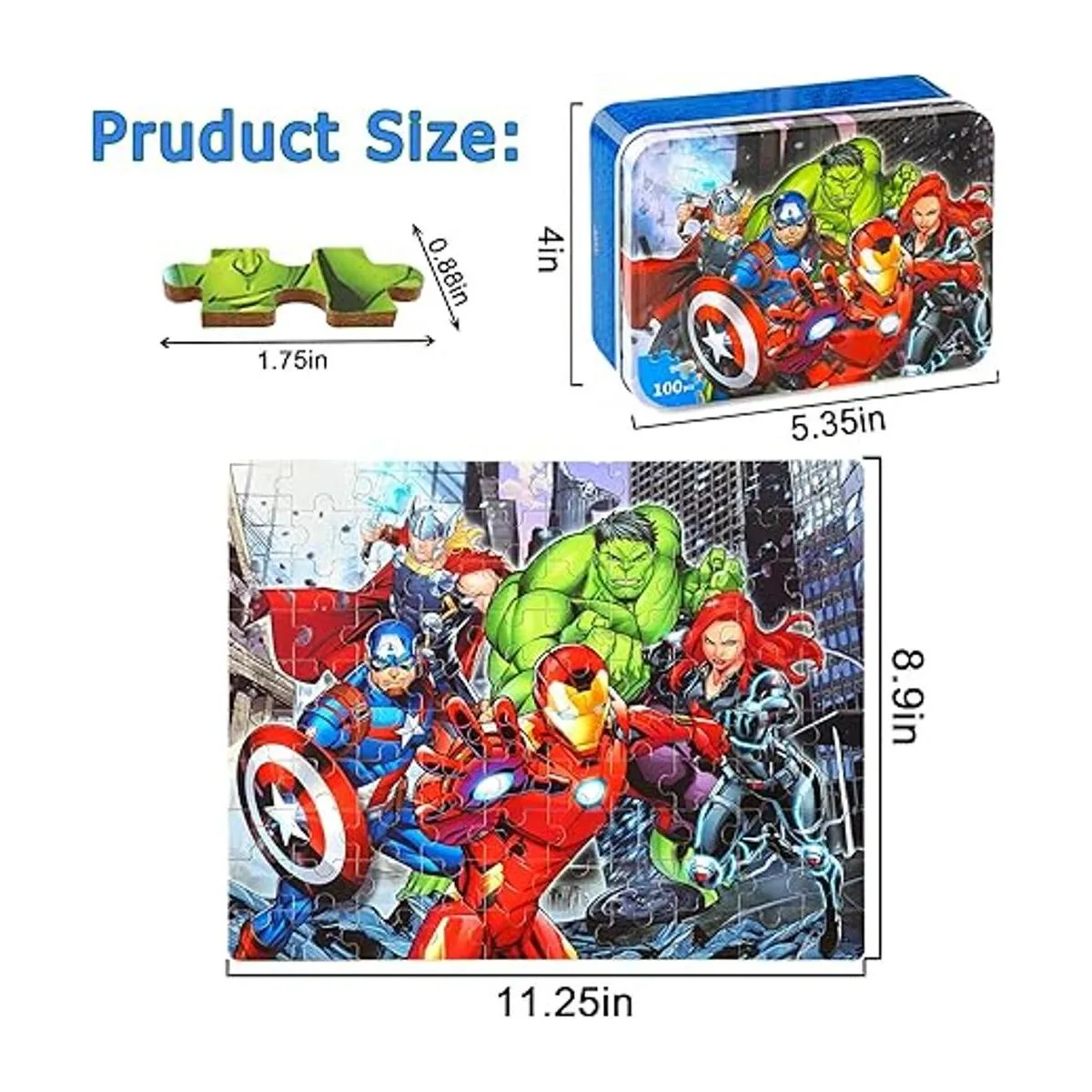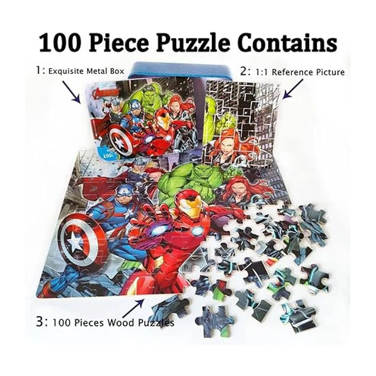LELEMON Rompecabezas de Disney para niños de 4 a 8 años, rompecabezas de superhéroe de 100 piezas en una caja de metal, rompecabezas de Avengers para niños de 4 a 8 años, juguetes educativos para niños y niñas autorizados por Disney