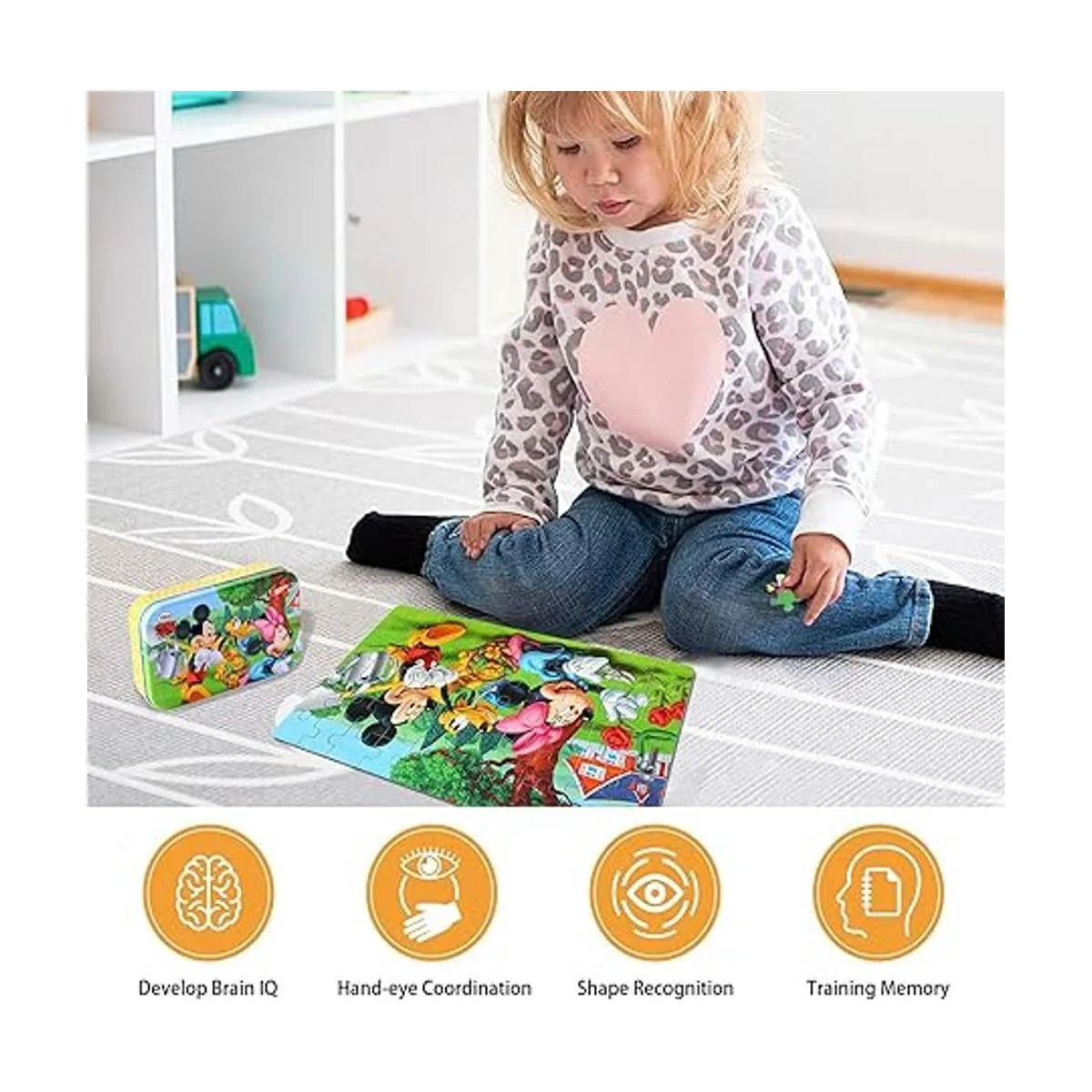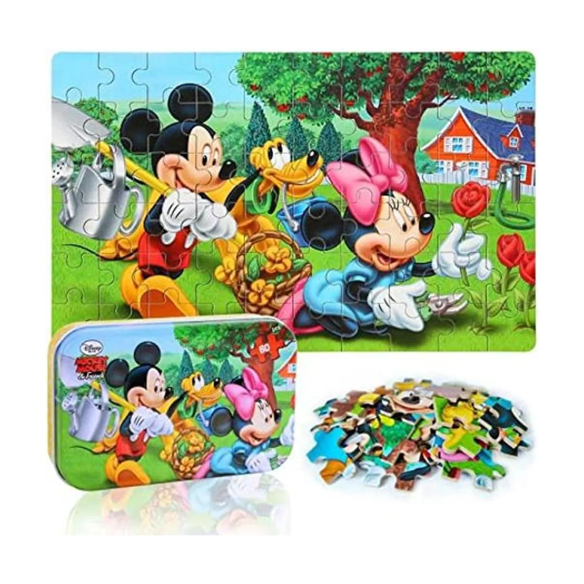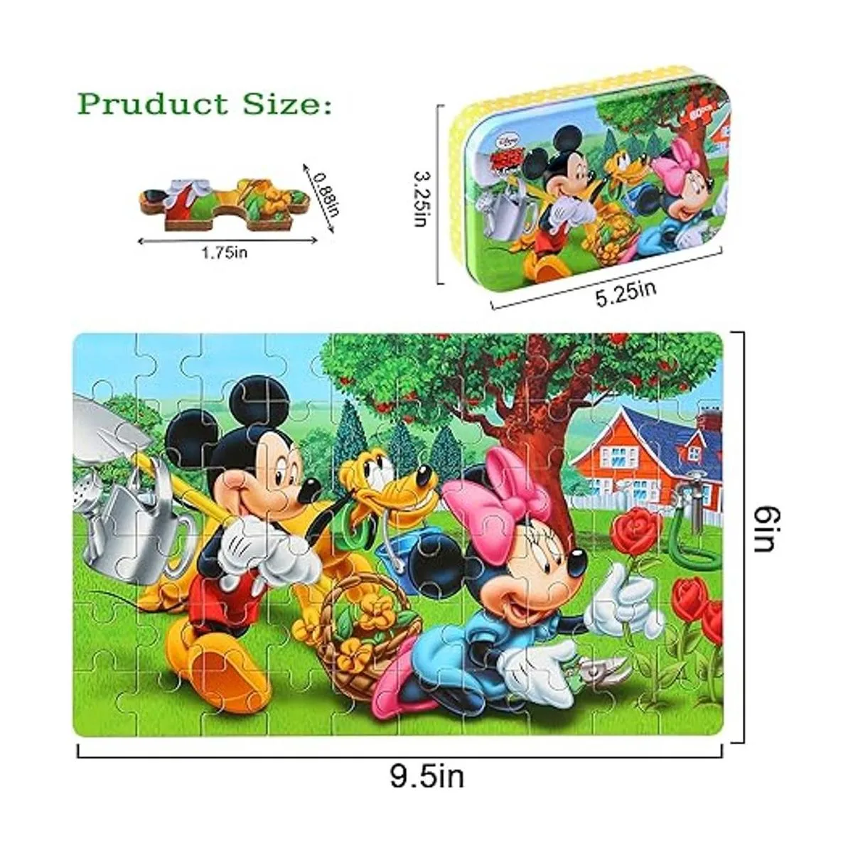 LELEMON Rompecabezas para niños de 4 a 8 años, rompecabezas de Disney de 60 piezas en una caja de metal, rompecabezas de Mickey Mouse, rompecabezas educativos para niñas y niños