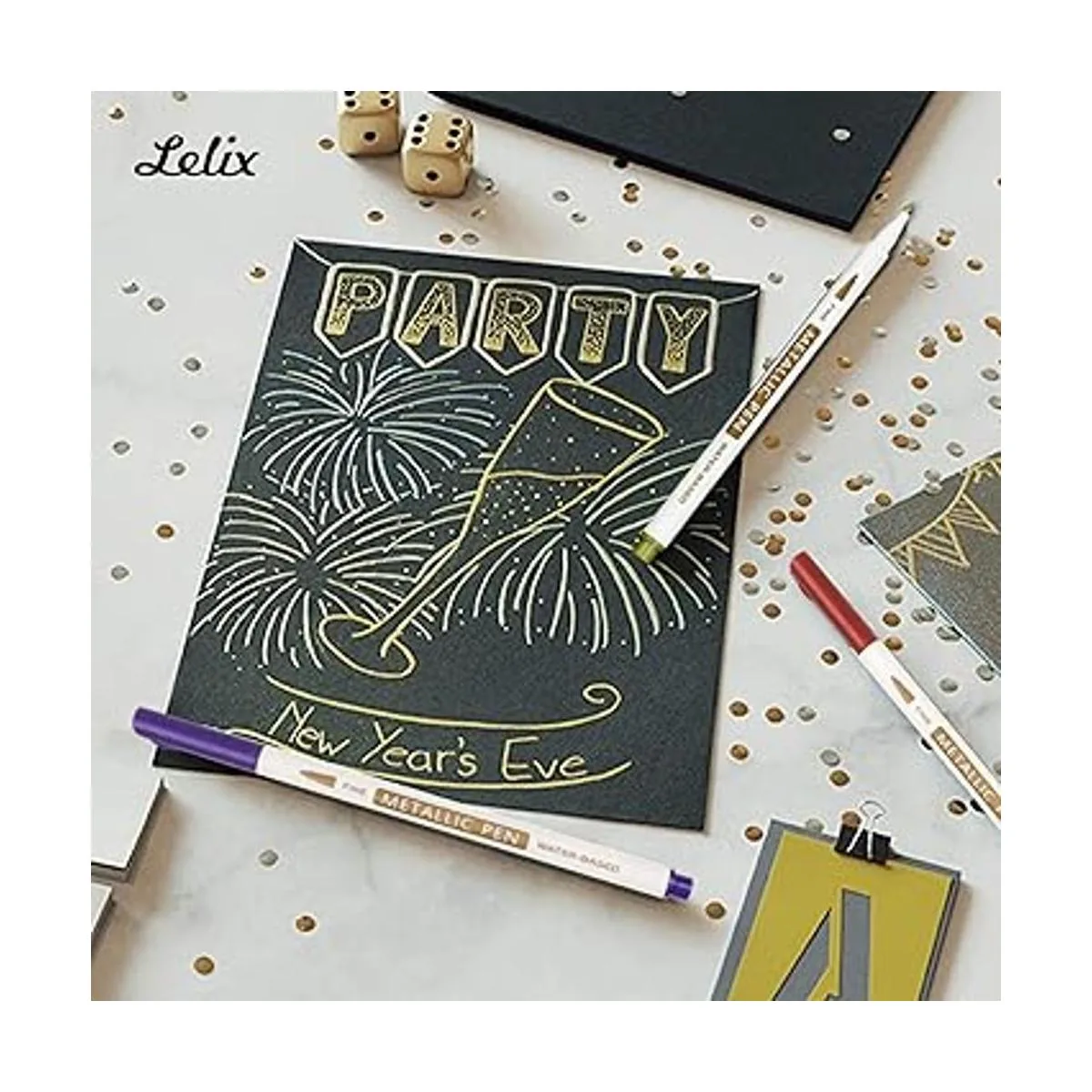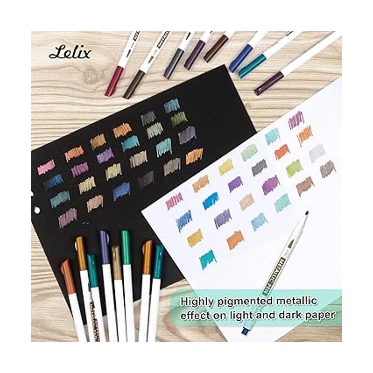 Lelix Rotuladores metálicos de 24 colores, punta fina para álbum de fotos de bricolaje, papel negro, fabricación de tarjetas, pintura de arte rupestre, álbumes de recortes, vidrio, metal, madera