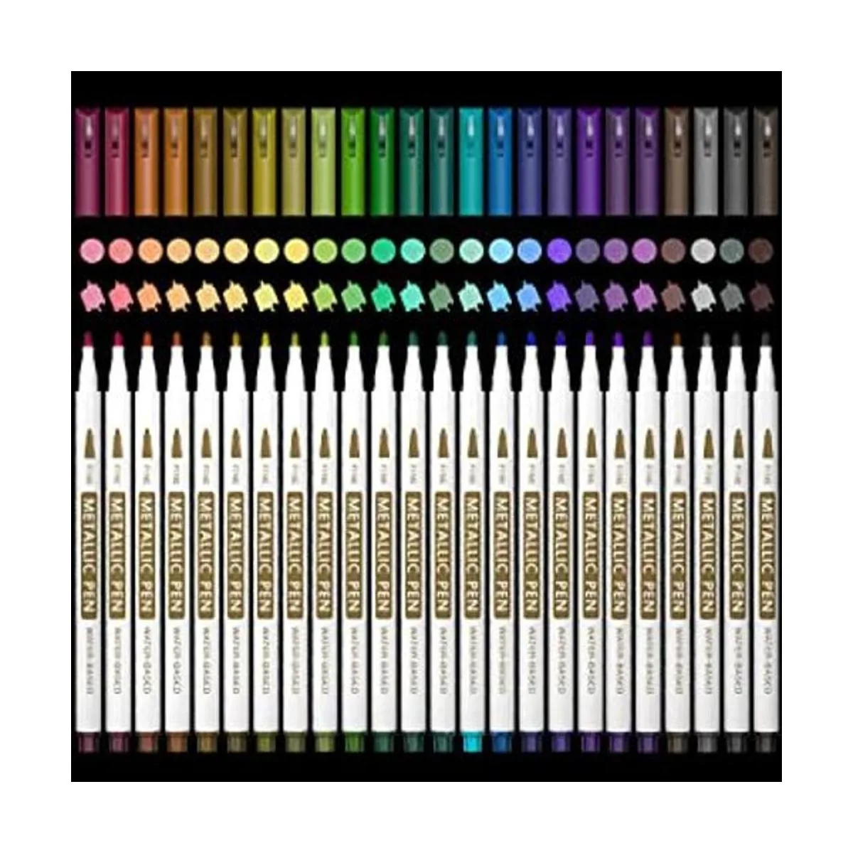 24 colores variados: juego de 24 marcadores metálicos vibrantes, cada color es metálico y lo suficientemente atractivo como para darte una maravillosa experiencia de dibujo y añadir más diversión a tus proyectos de arte.