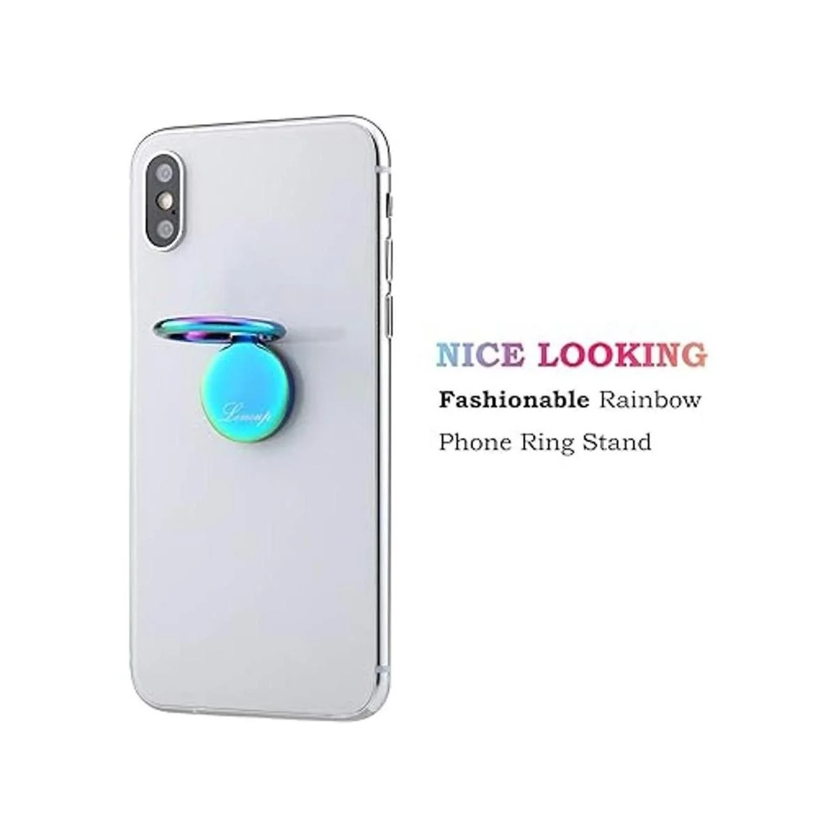 lenoup Soporte para anillo de teléfono celular con arco iris, soporte de agarre de anillo multicolor azul, anillo de dedo de metal de rotación 360 para casi todos los teléfonos, almohadilla