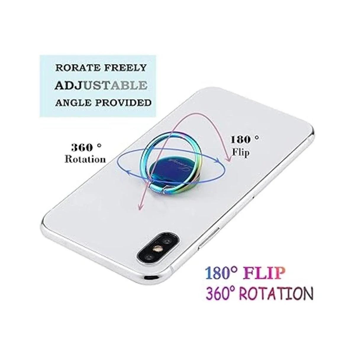 Anillo de agarre seguro: un agarre y soporte necesarios para evitar que se caigan los teléfonos mientras estás operando el teléfono. Rotación de 360 o 180 para hacer un ángulo adecuado para ver vídeos o hacer una llamada de vídeo.