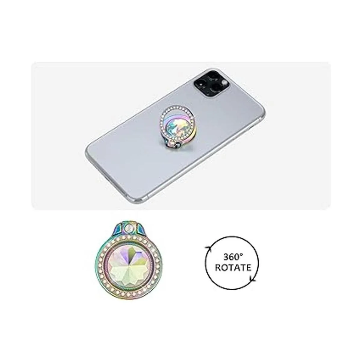 Cómodo y seguro: el agarre de anillo de teléfono de diamante evita que tu teléfono se caiga accidentalmente y se deslice. Bonito anillo iridiscente para teléfono con diamantes de imitación es bueno para uso con una sola mano.