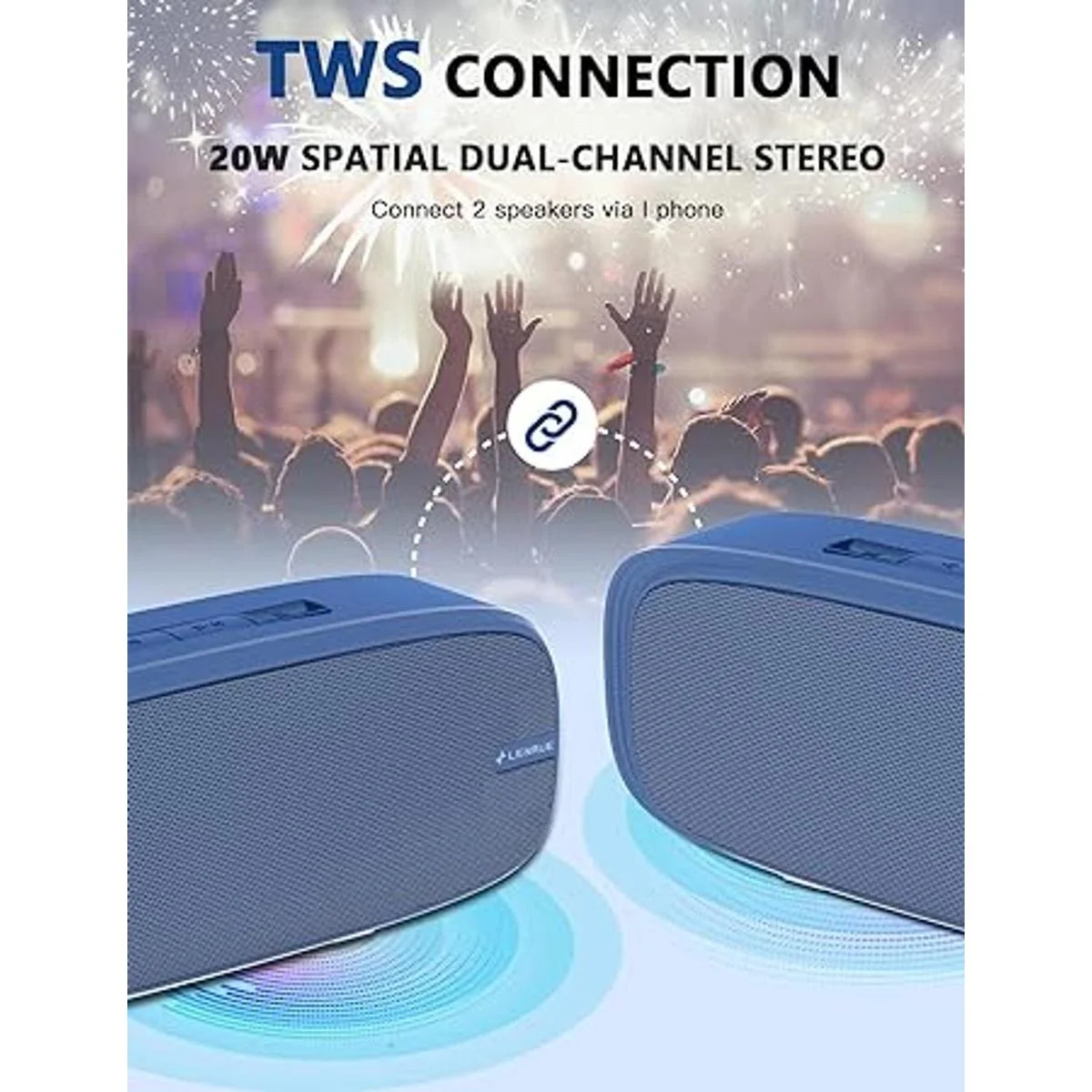 LENRUE Altavoz Bluetooth, altavoz portátil inalámbrico con sonido estéreo fuerte, graves ricos, tiempo de reproducción de 12 horas, micrófono integrado. Perfecto para iPhone, Samsung y más azul