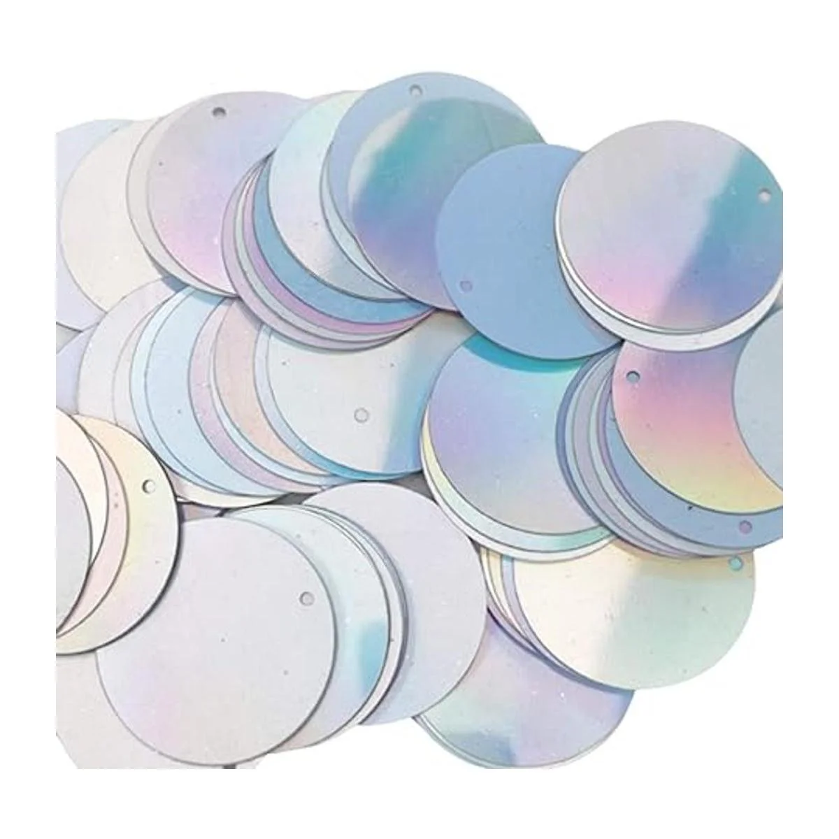 Las lentejuelas metálicas son plateadas brillantes con rayas iridiscentes de arco iris