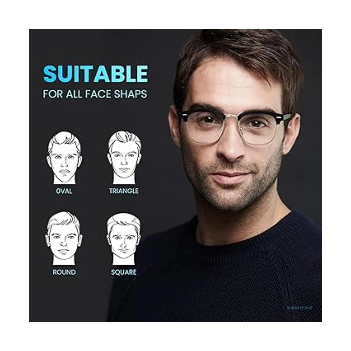 Gafas de luz azul para hombre: diseño de moda: marcos de alta calidad, diseño clásico semirsin montura con lentes antiluz azul que se adaptan a varias caras
