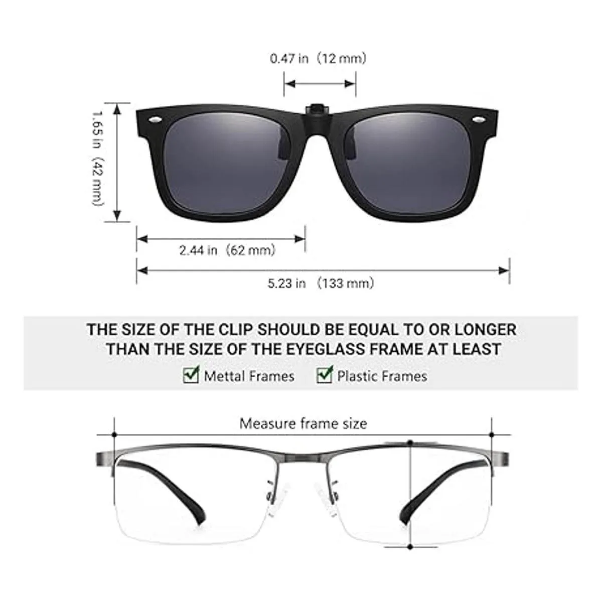Las mejores gafas de sol con clip. El clip es resistente y las patas tienen goma suave para proteger la lente. La lente polarizada reduce el deslumbramiento reflejado en carreteras, cuerpos de agua, nieve.