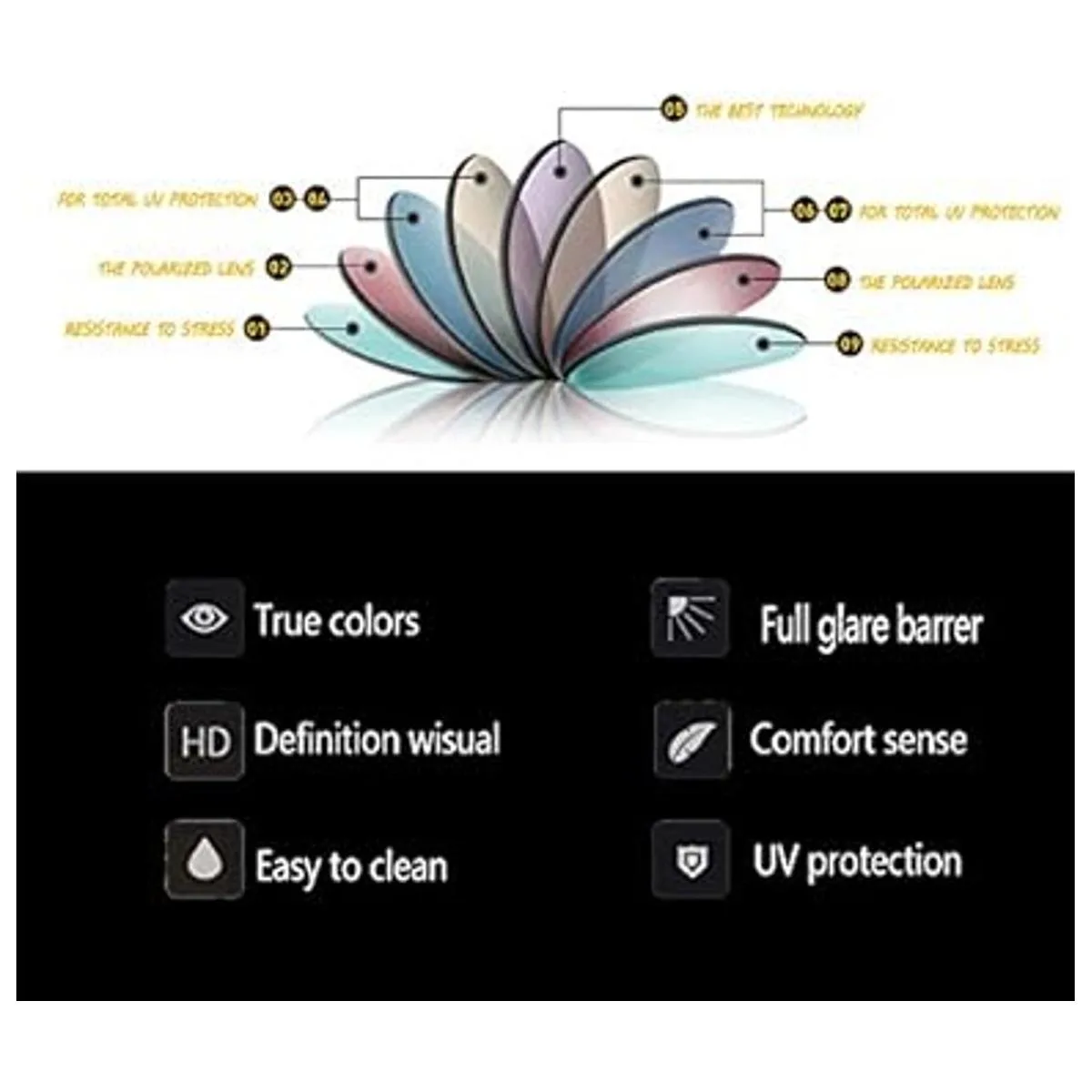 Superior tecnología lentes polarizadas no causa ningún reflejos en luz fuerte, proporcionar una buena visión para usted.
