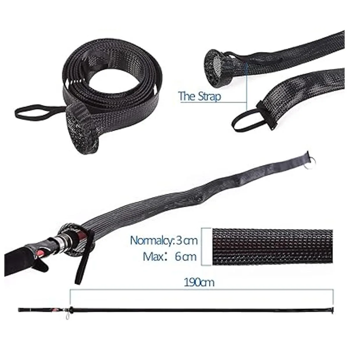 Ventajas: las cubiertas de caña de pescar, la estructura de tejido única y la amplia escalabilidad significan una fácil instalación. A diferencia de la funda de tela, la lengeta se puede quitar fácilmente. ; Fácil de almacenar, especialmente para cañas con formas de guía, para proteger las cañas de pescar y evitar arañazos. Muy adecuado para armarios de almacenamiento de caña, tubos de almacenamiento de caña, camiones traseros o barcos de ida y vuelta.