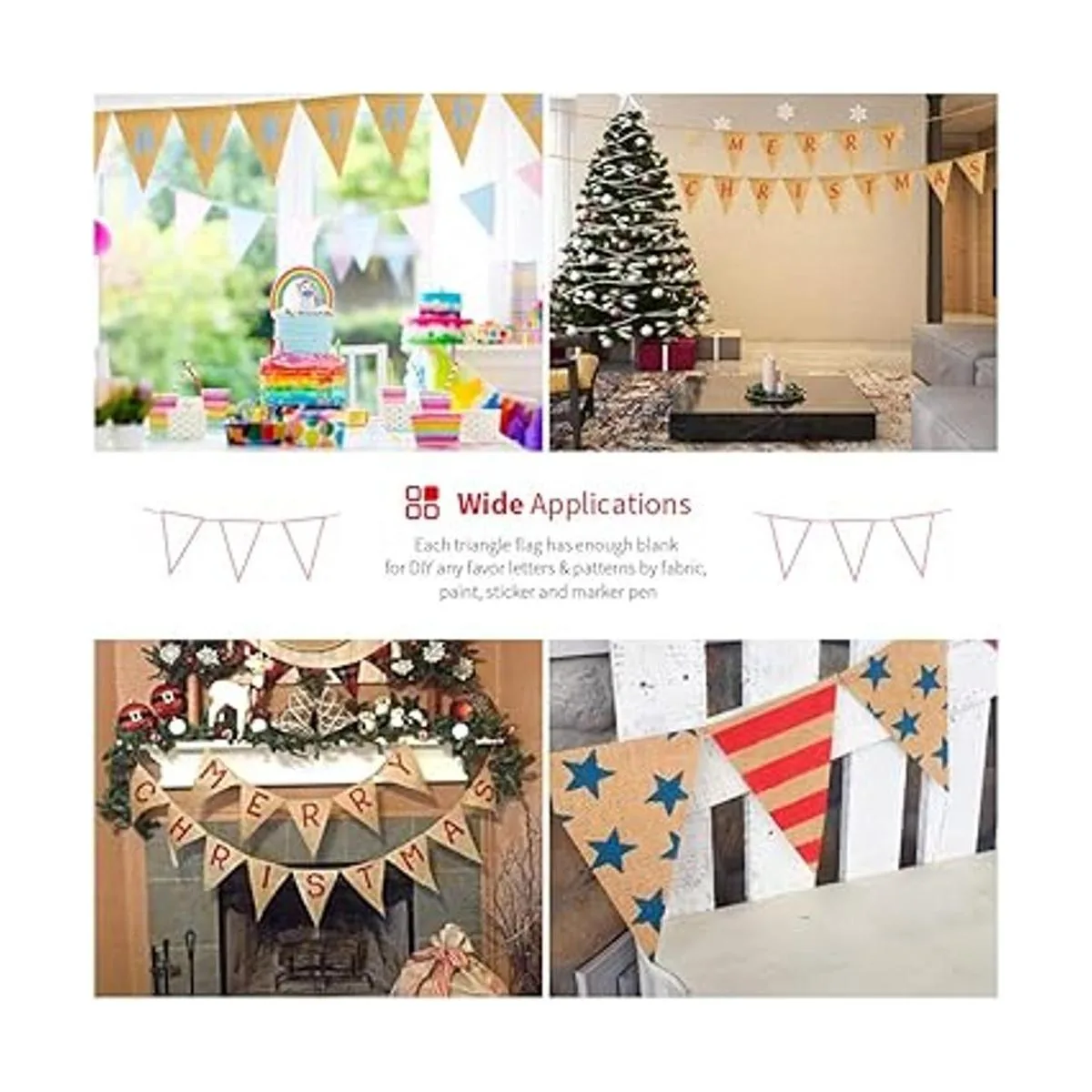 LEOBRO 48 banderines de arpillera, bandera triangular de 36 pies, decoración de bricolaje para vacaciones, bodas, campamentos, fiestas, decoraciones de Año Nuevo, pancarta de Feliz Navidad, decoración de Navidad interior