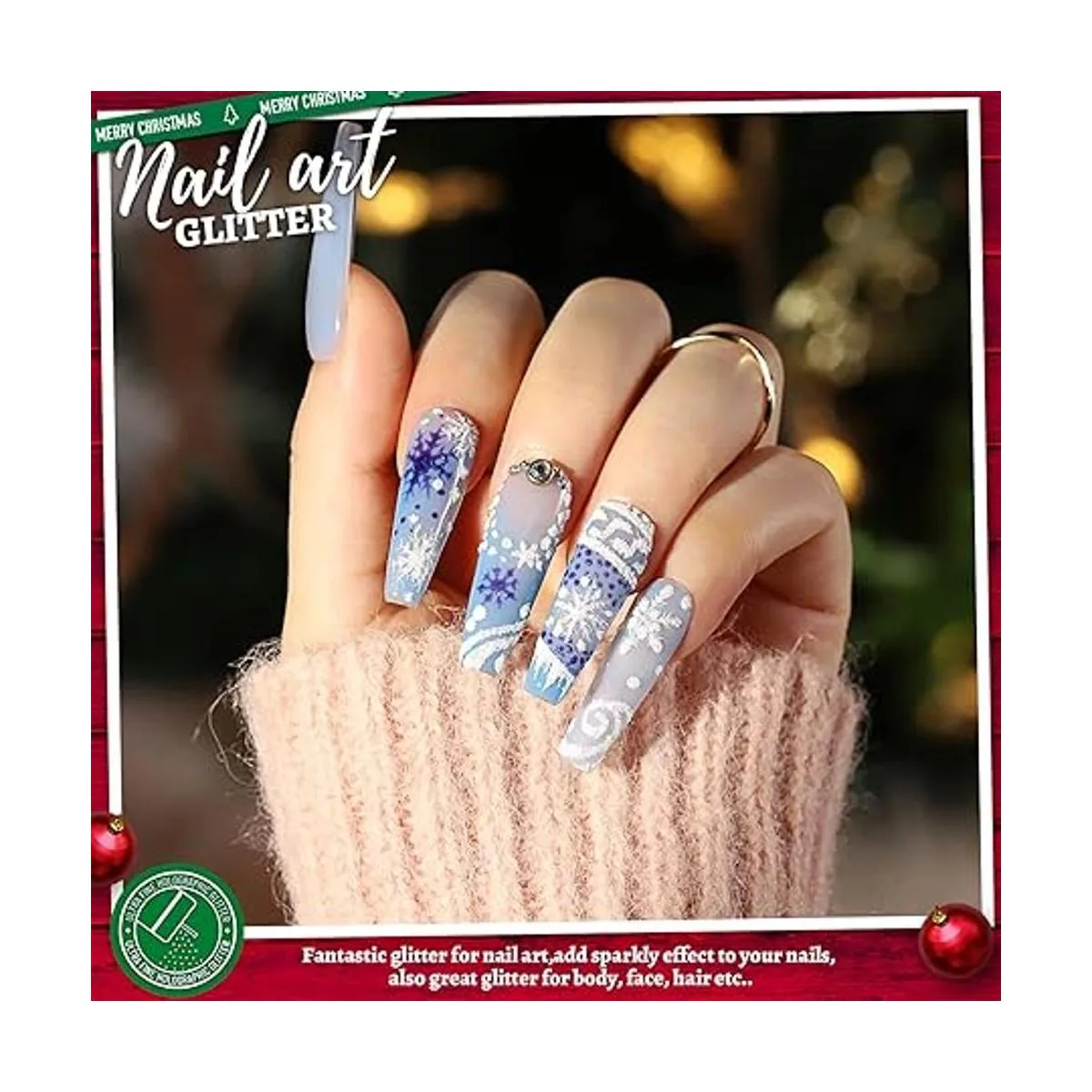 Fantástica purpurina para festivales de Navidad: purpurina decorativa ideal para Navidad, para hacer copos de nieve con purpurina, globo de nieve con purpurina, bolas de Navidad, adornos de Navidad, decoración de árbol de Navidad, etc. También es una gran purpurina para crear maquillaje temático de Navidad, aplica la purpurina en tu cara, cuerpo, cabello, uñas, para hacer un aspecto impresionante o ponerla en tu disfraz, vestido, te lleva en el agradable ambiente festivo.
