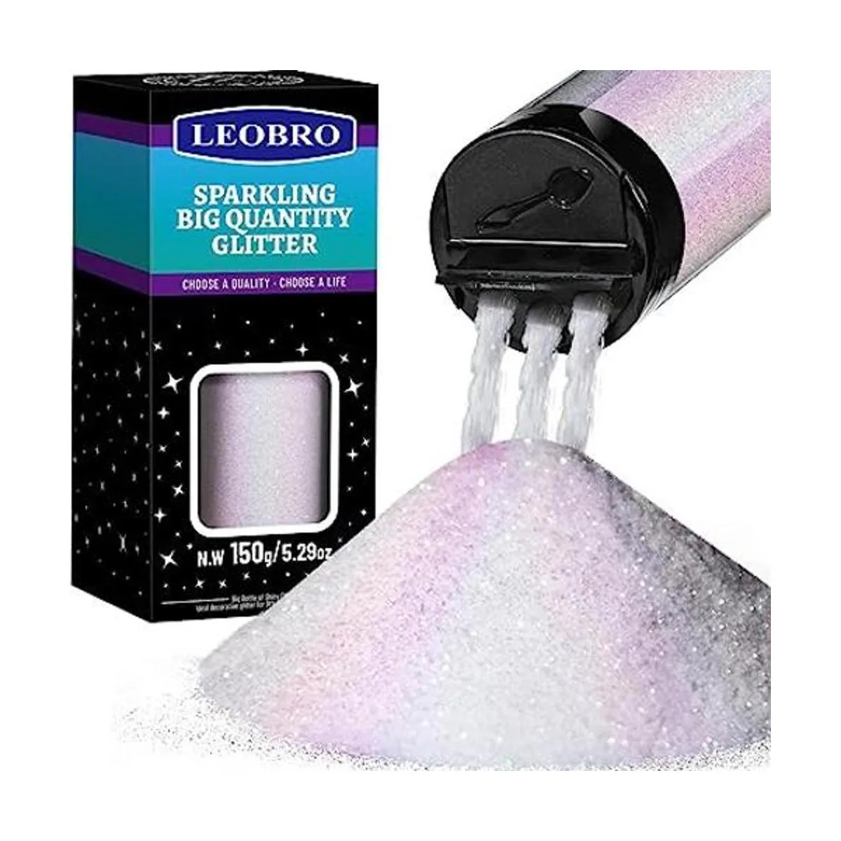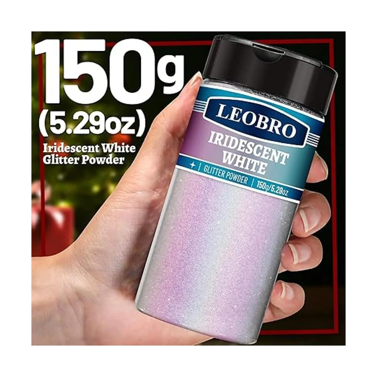 LEOBRO Purpurina fina blanca holográfica, 5.29 onzas, polvo de purpurina extra fina, purpurina iridiscente para resina, vasos de bricolaje, purpurina corporal para decoración de Navidad