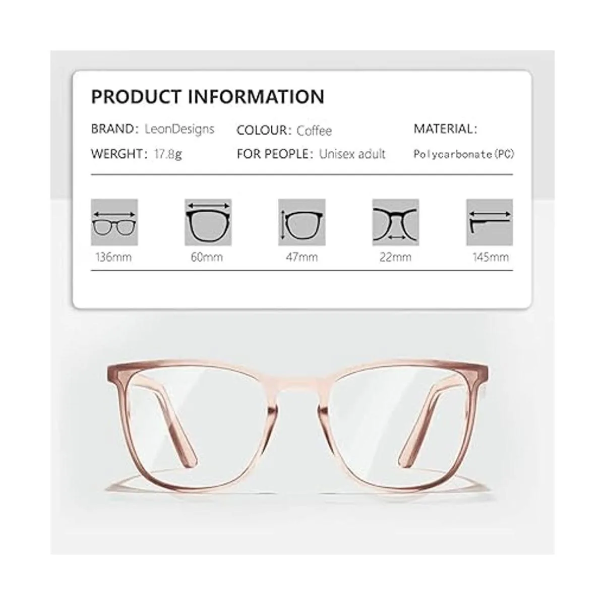 LeonDesigns Elegantes gafas de seguridad antivaho con bloqueo de luz azul café cuadrado