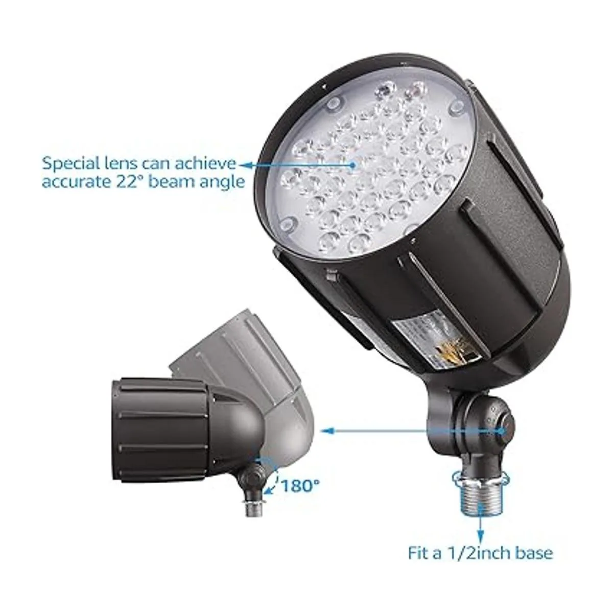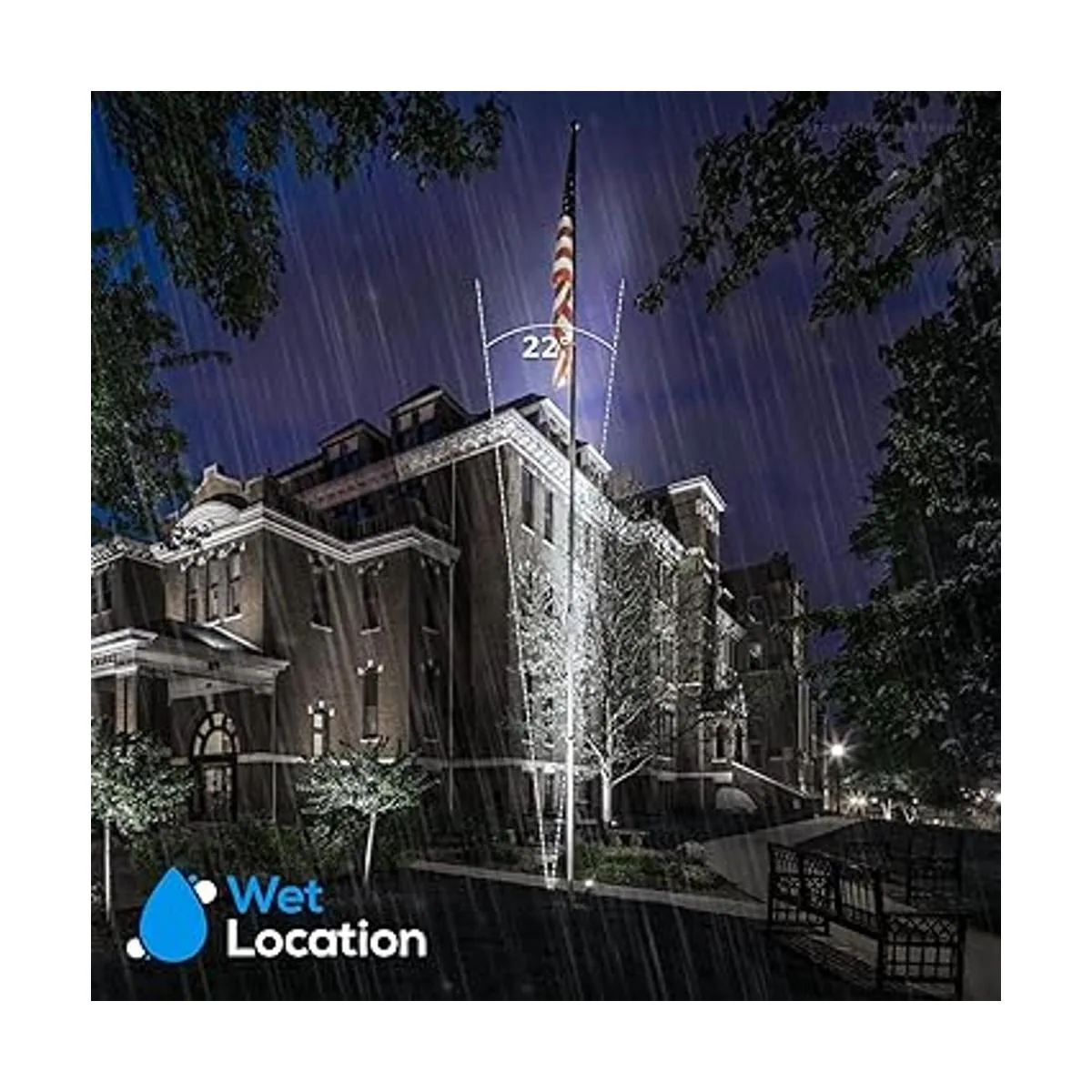 Lente especial: el ángulo de haz de 22 de este foco LED y la lente especialmente diseñada ofrecen un efecto de iluminación más preciso que evita desperdicios. Esto lo hace perfecto para iluminar los edificios, banderas y mucho más