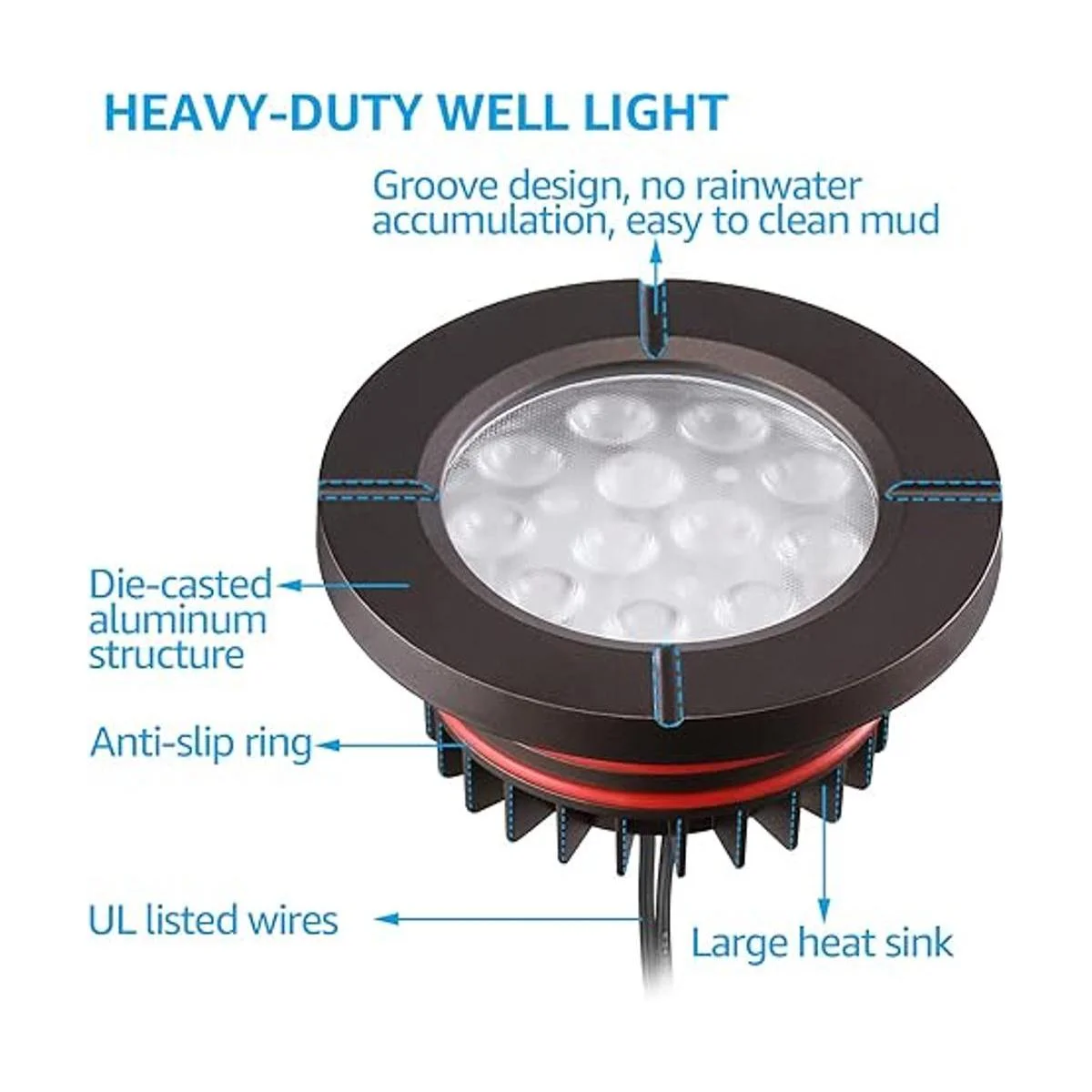 LEONLITE Luces de pozo de 6 W, 1224 V CACC, IP67, impermeables, de aluminio, bajo voltaje, cable listado UL, CRI 90, blanco cálido de 3000 K, bronce aceitado, luces de jardín, paquete de 6