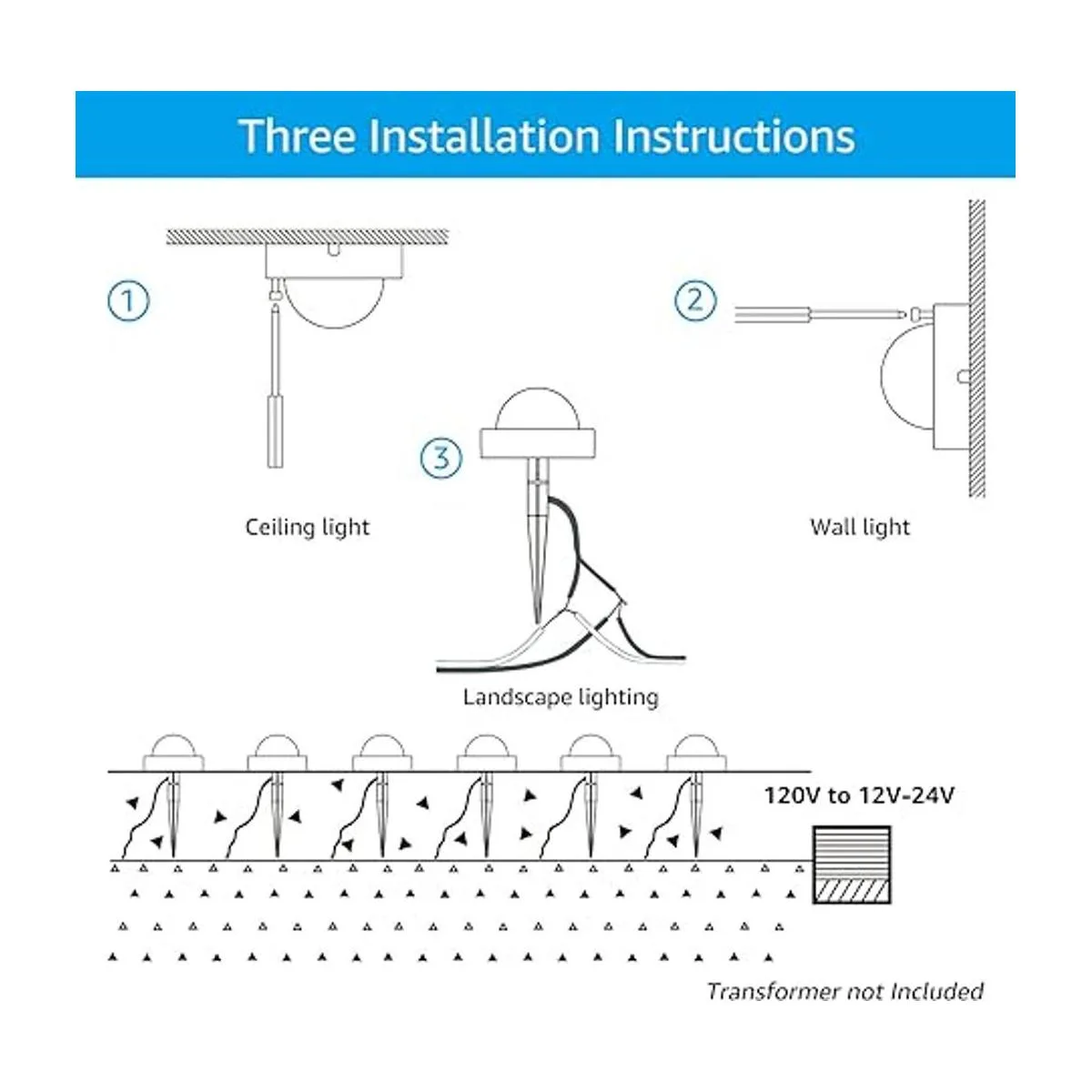 Multiusos: al aire libre, interior, iluminación de camino, iluminación de cubierta, instalación de techo, instalación de pared se puede utilizar. Cada lámpara viene con una estaca de aluminio de 7 pulgadas necesaria para el montaje en tierra y otros accesorios necesarios para el montaje en pared